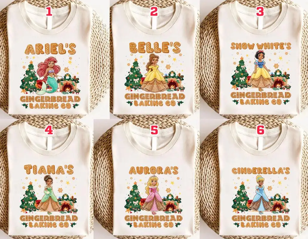 Custom Disneyland All Characters Baking Co Gingerbread Bakery Christmas Shirt Princess Gingerbread Christmas Shirt Family Matching Xmas Tee