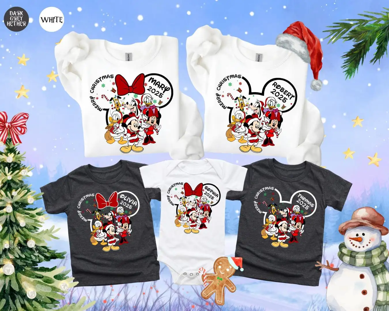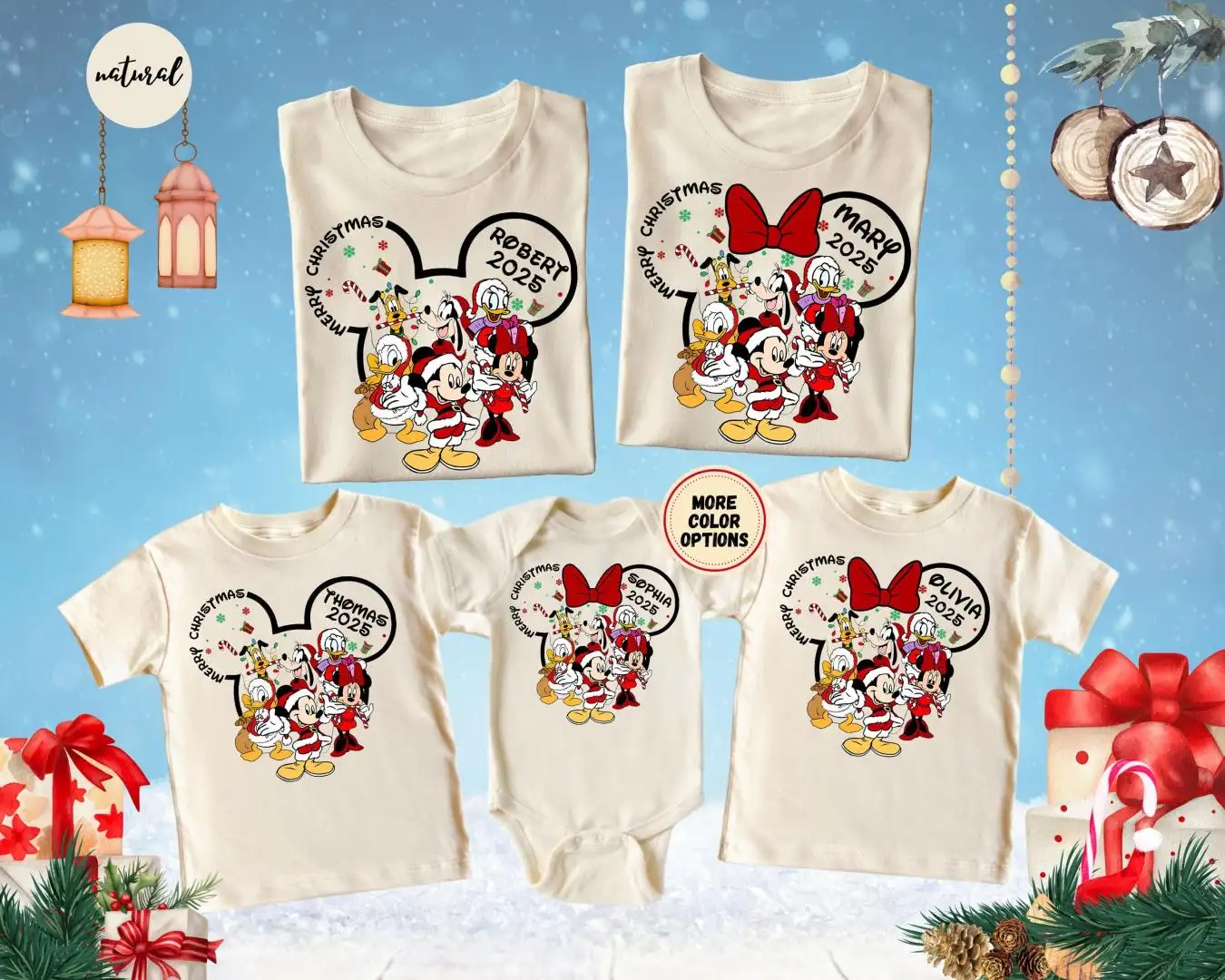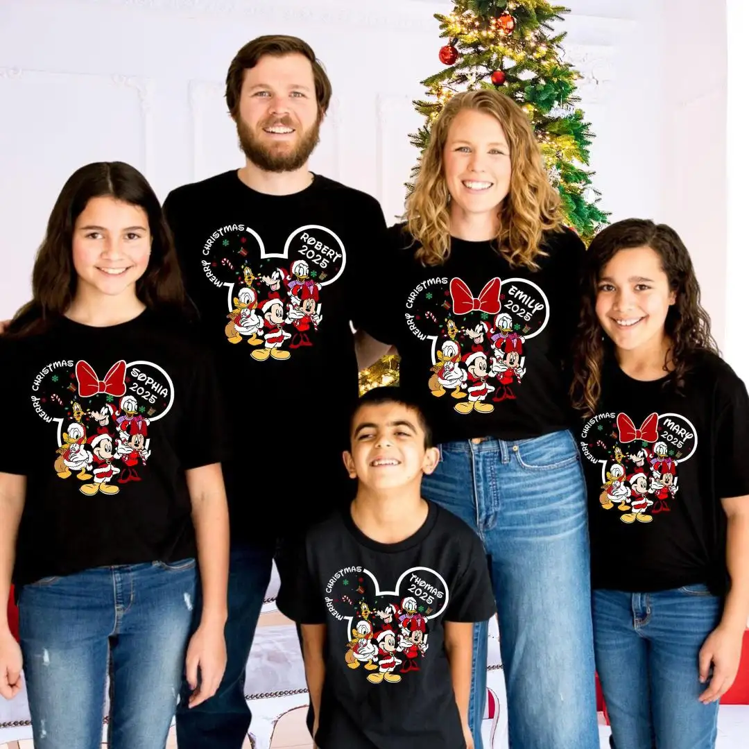 Custom Family Christmas Disney 2025 Shirts, Matching Holiday Mickey Minnie Tees, Cute Personalized Xmas Gift Tops, Family Trip Outfits