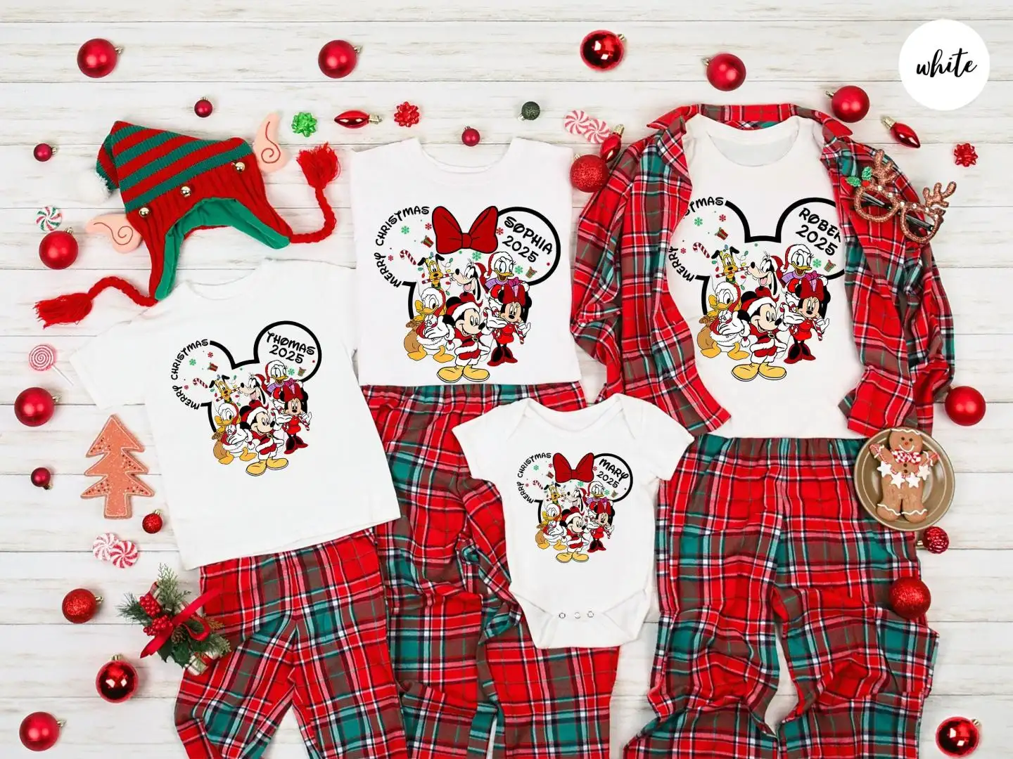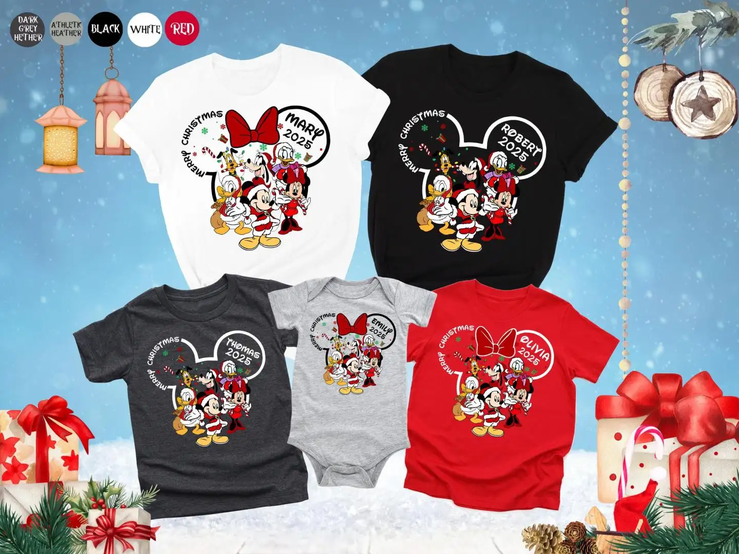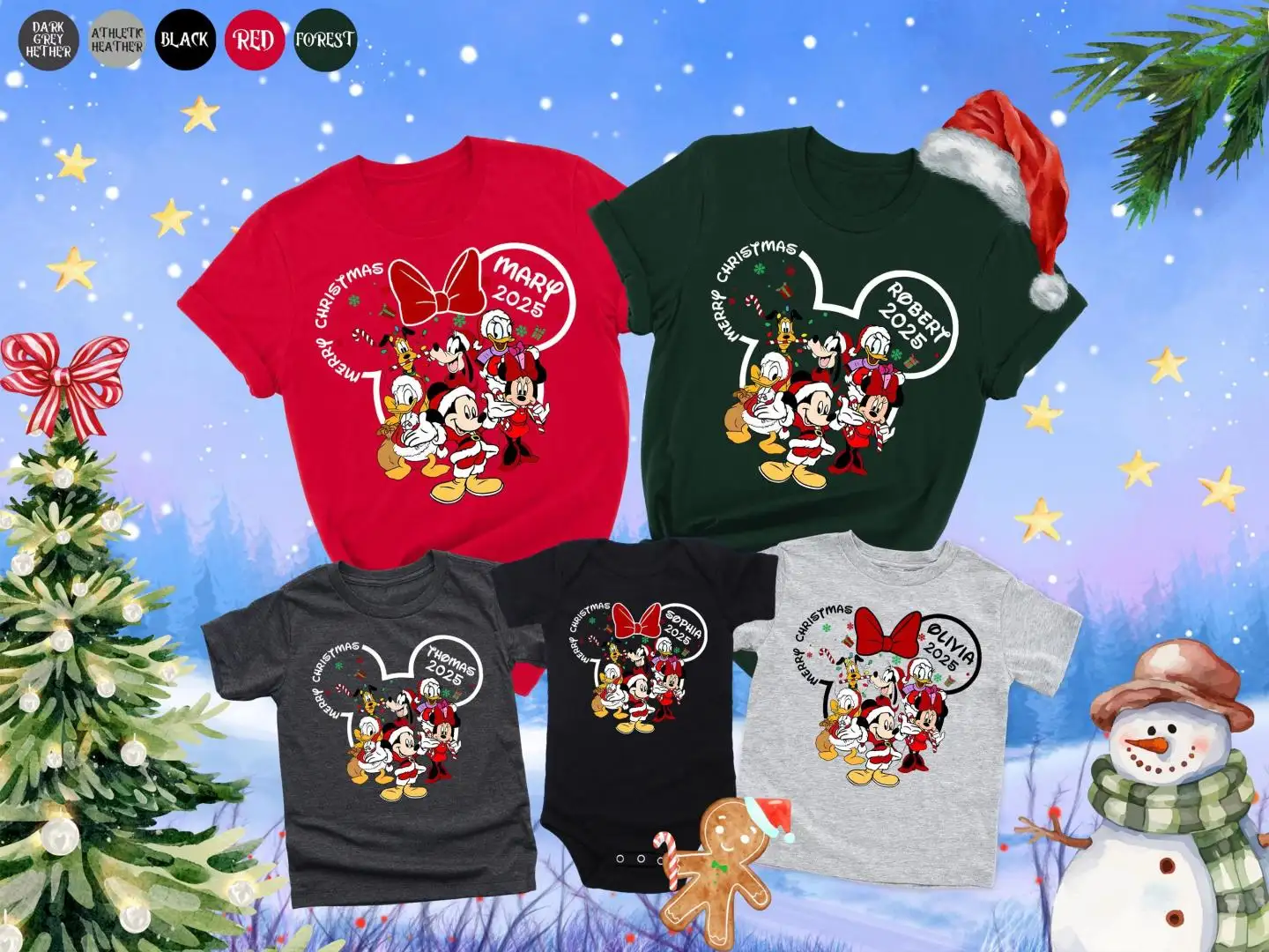Custom Family Christmas Disney 2025 Shirts, Matching Holiday Mickey Minnie Tees, Cute Personalized Xmas Gift Tops, Family Trip Outfits