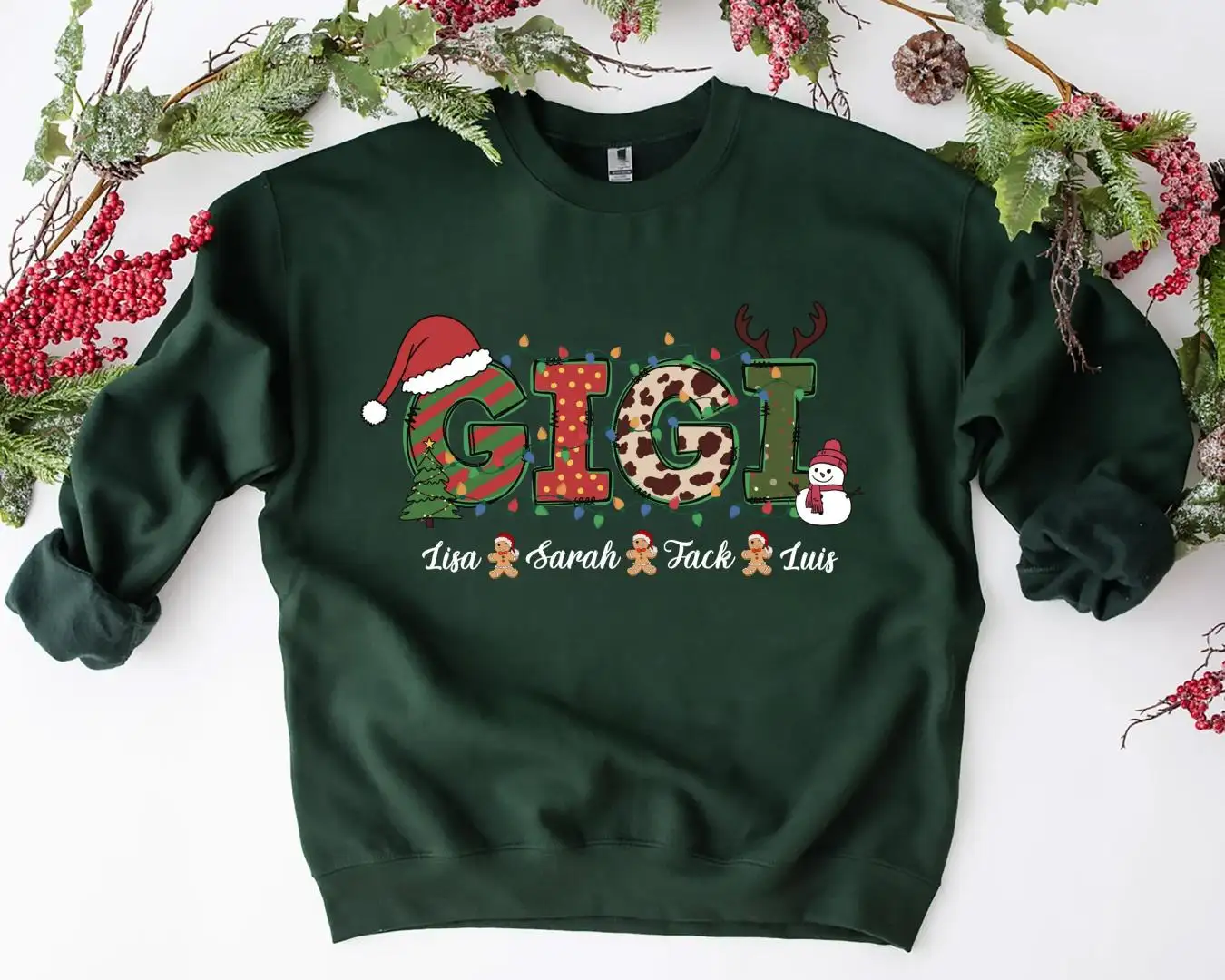 Custom Gigi Claus Sweatshirt, Christmas Grandma Sweatshirt, Custom Grandma Shirt with Grandkids Names, Nana And Grandkids Christmas Shirt