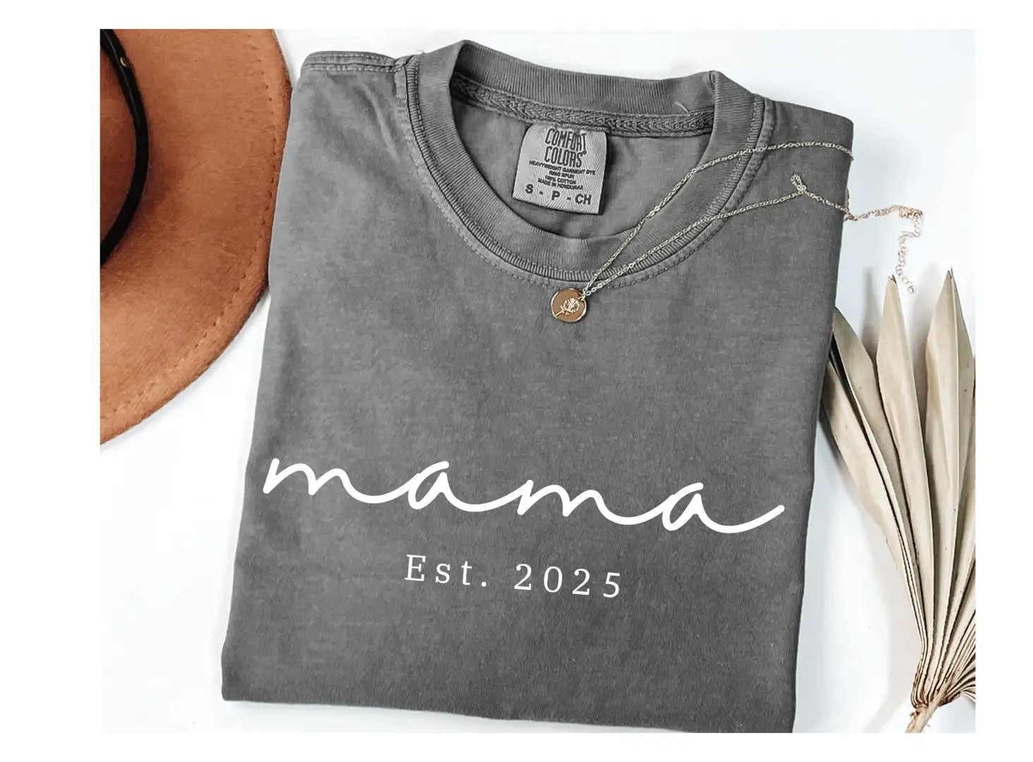 Custom Mama Est Year Pregnancy Announcement Shirt Gift