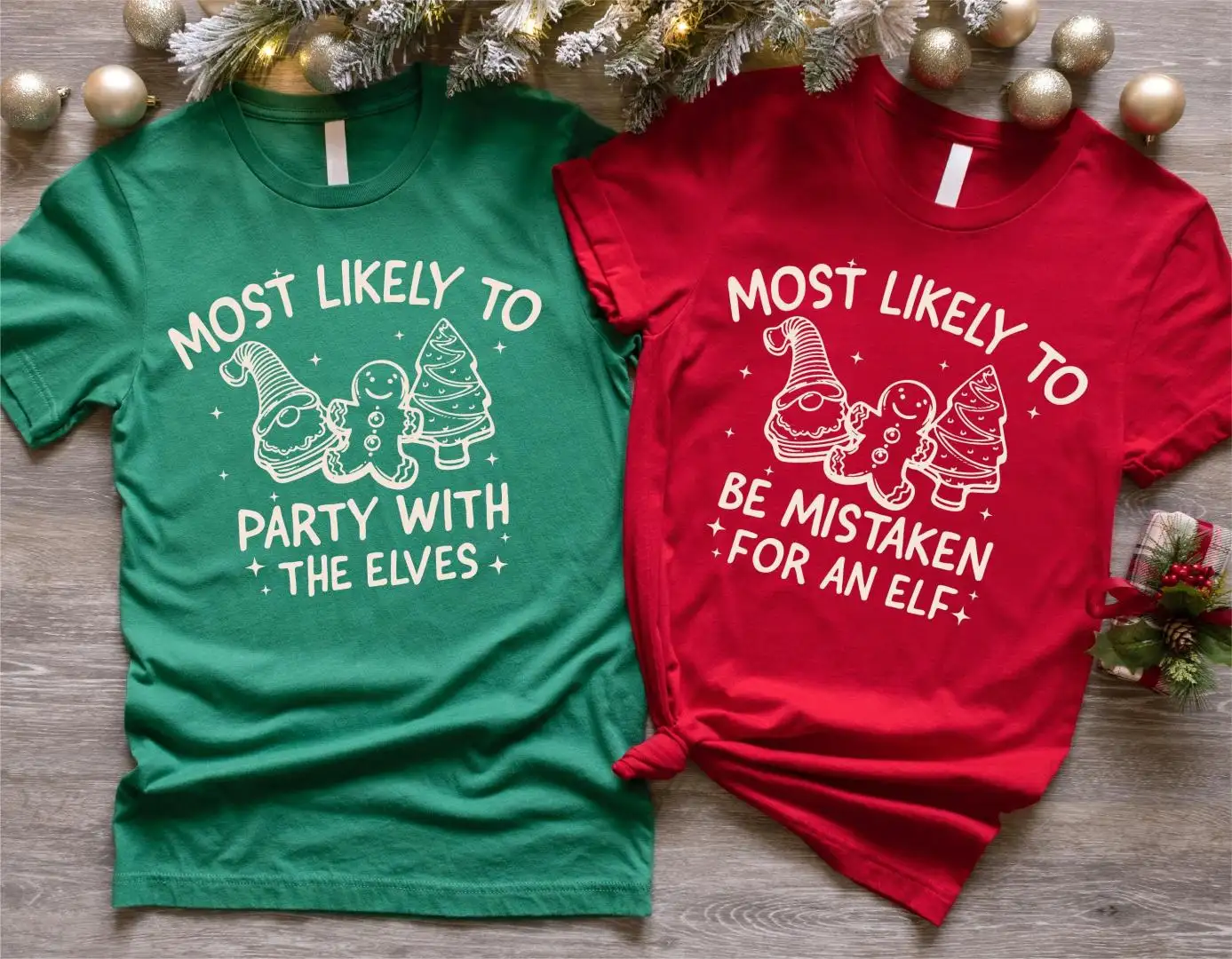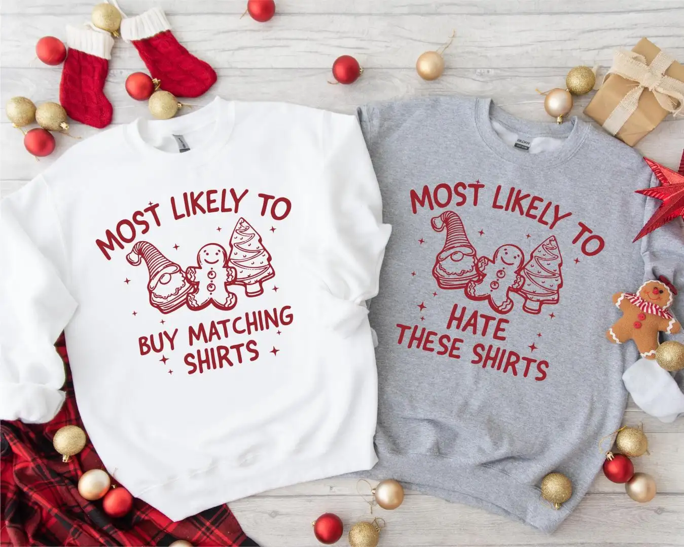 Custom Most Likely to Christmas Shirt, Funny Group Christmas Holiday Sweater, Cookies Family Matching Pajama Shirts, Most Likely Quotes Tee