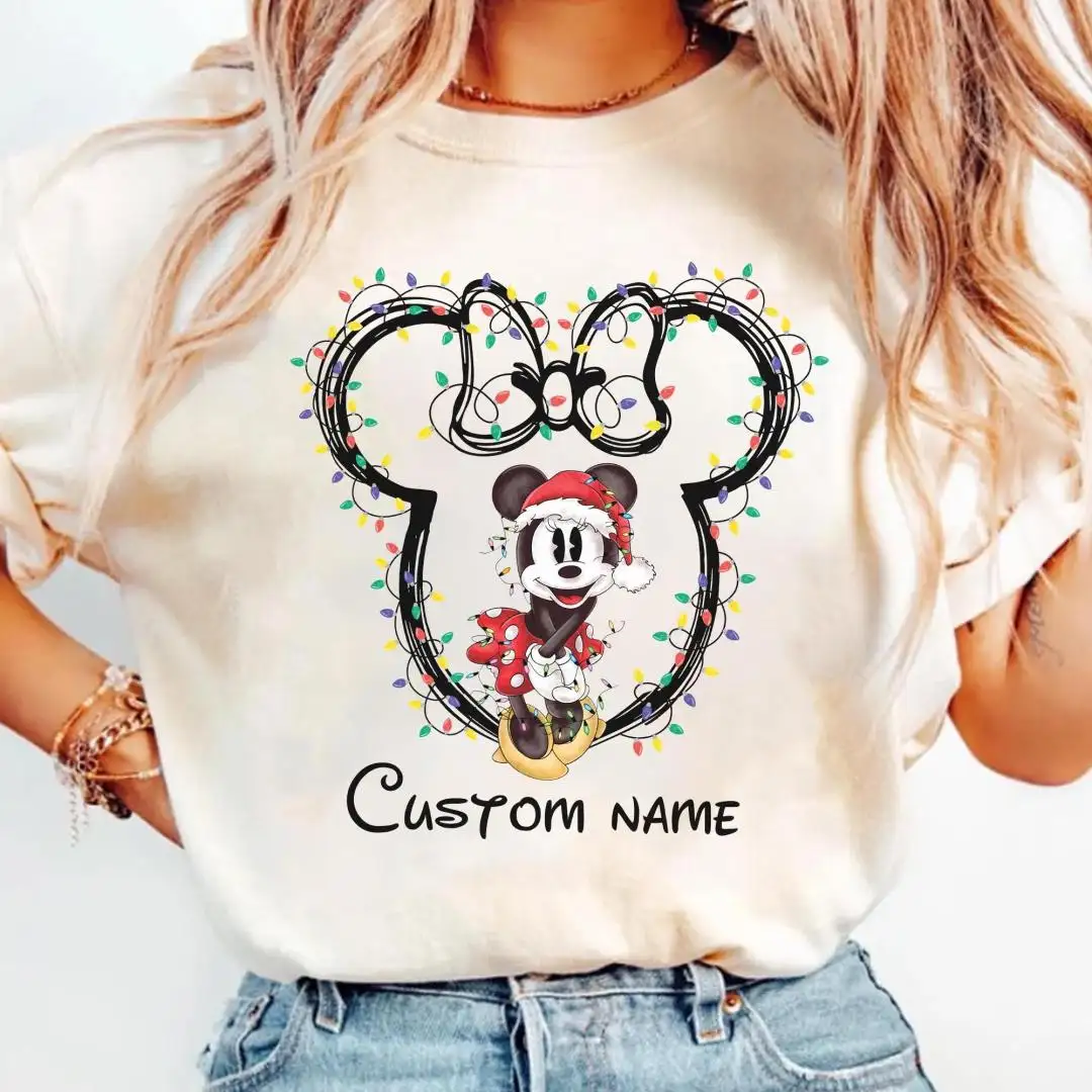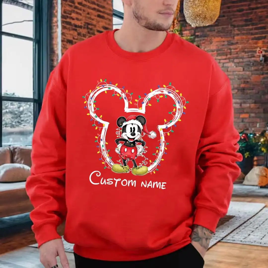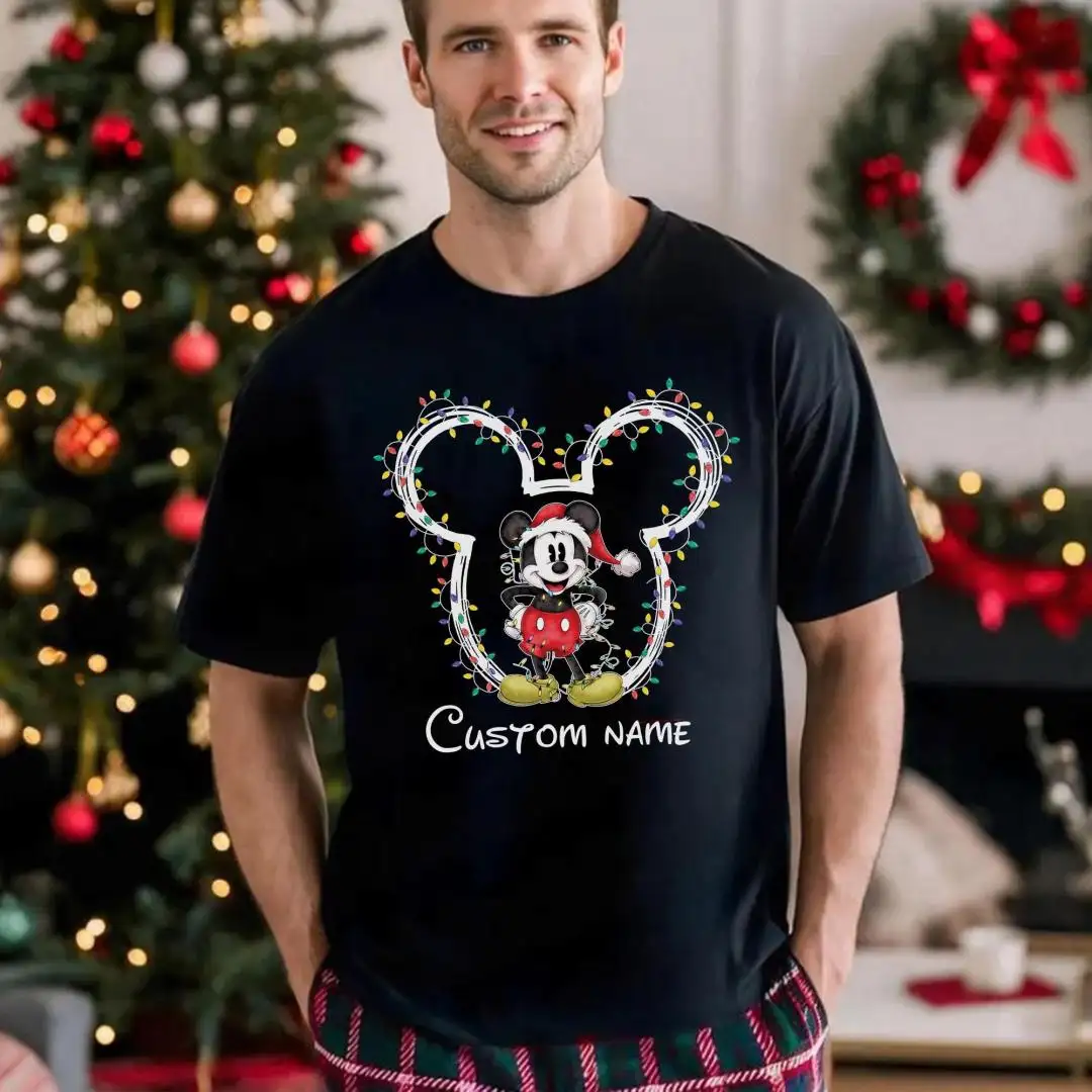 Review Custom Name Disney Couples Christmas Matching Shirts, Disney Family Xmas Party Matching Shirt, Mickey and Minnie Christmas Lights T-Shirt