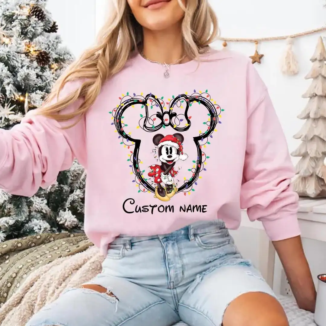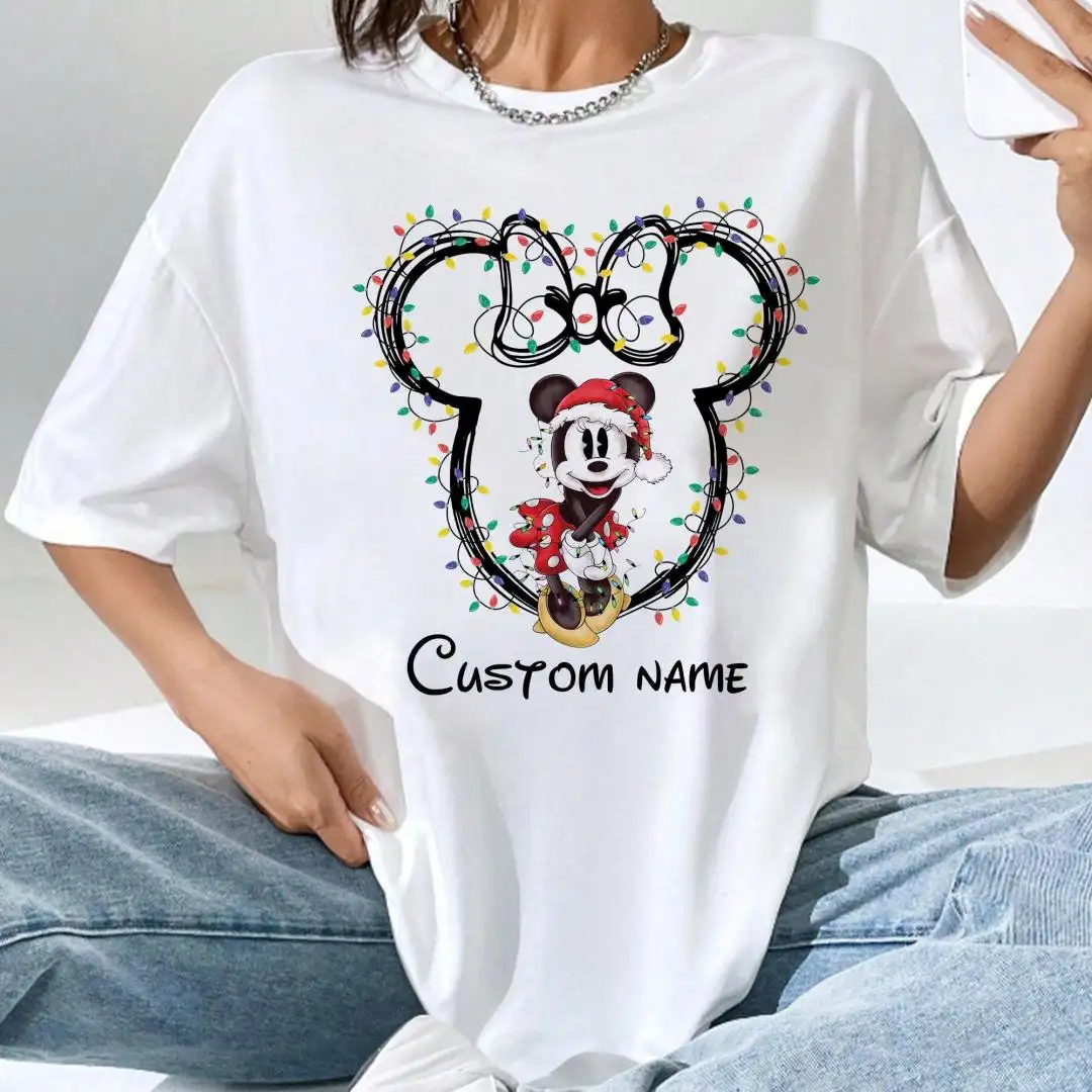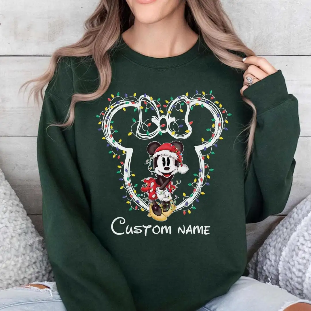 Review Custom Name Disney Couples Christmas Matching Shirts, Disney Family Xmas Party Matching Shirt, Mickey and Minnie Christmas Lights T-Shirt