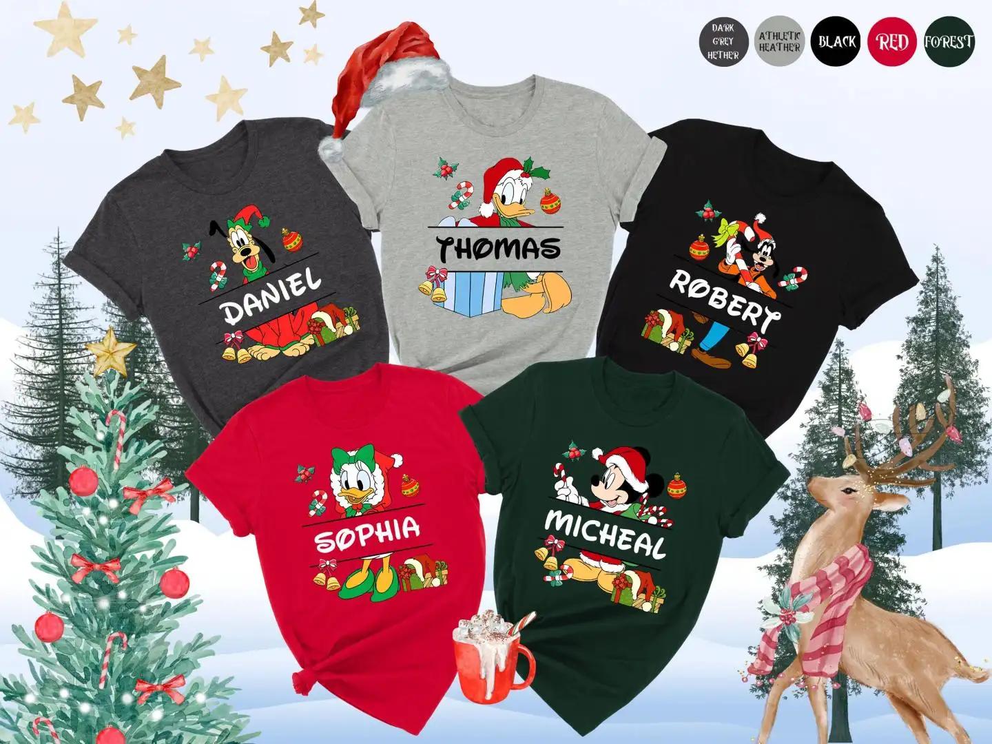 Custom Name Mickey Christmas Shirt, Mickey and Friends Holiday Tee, Kids Family Xmas Matching T Shirt, Personalized Disney Christmas T-Shirt