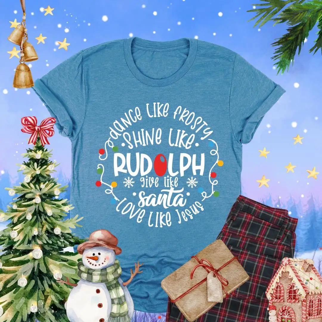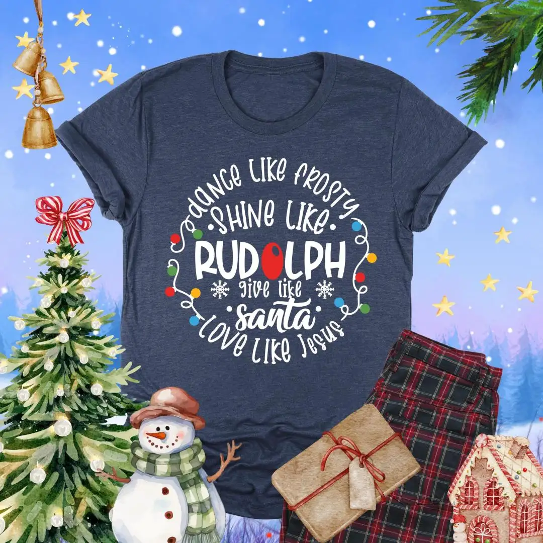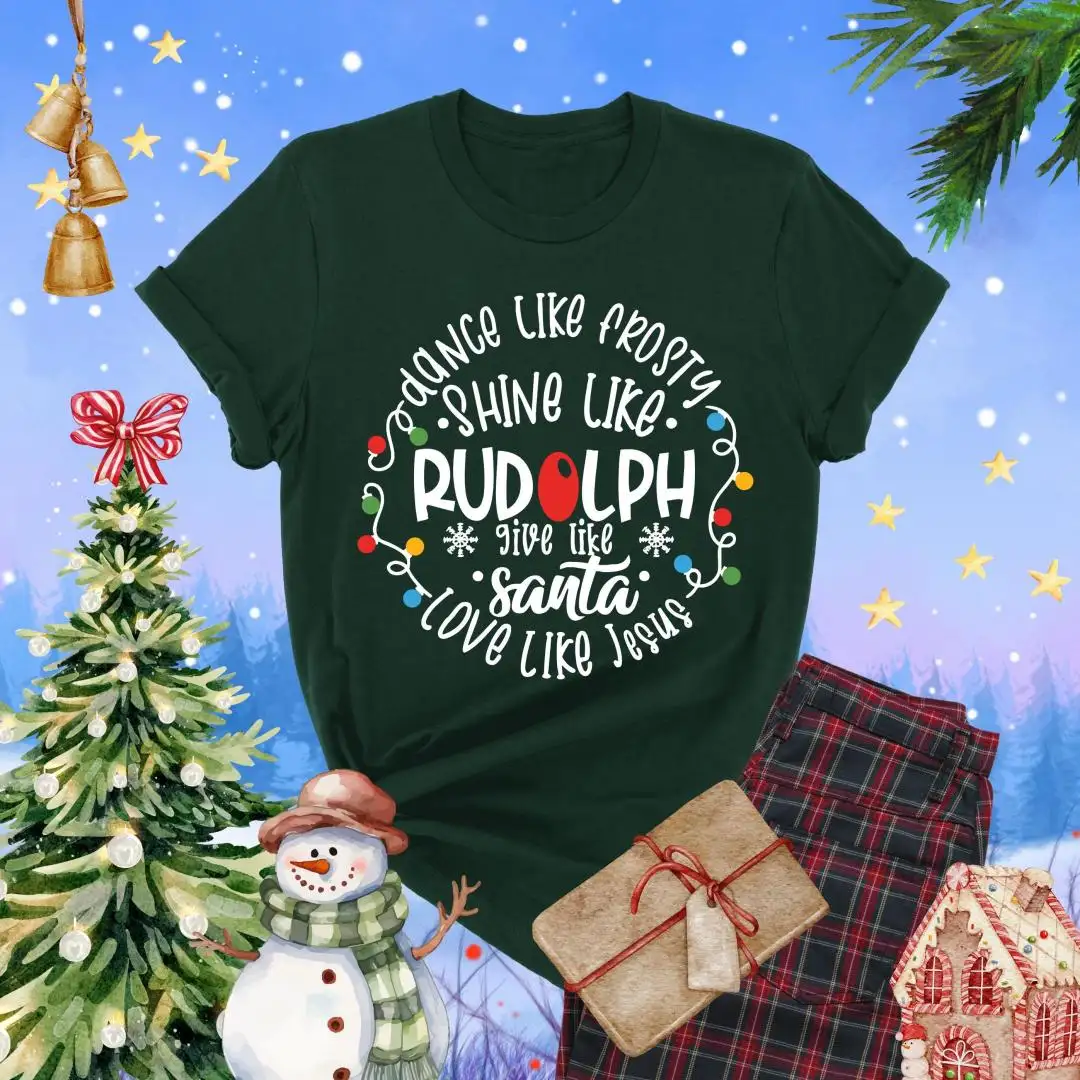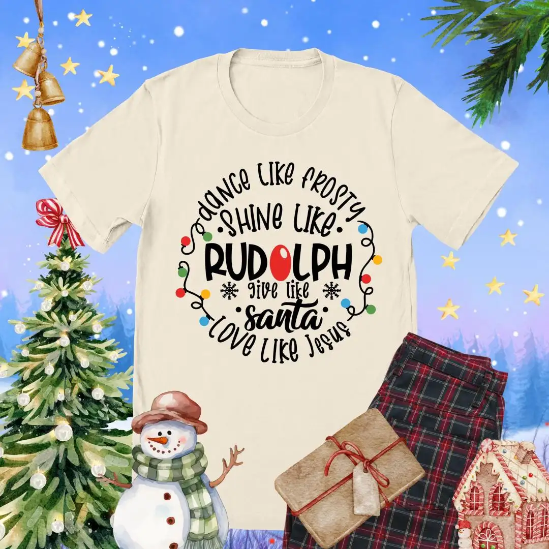 Dance Like Frosty Shine Like Rudolph Shirt, Faith Holiday Top, Reindeer Tee, Give Like Santa Love Like Jesus Tee, Christian Christmas TShirt