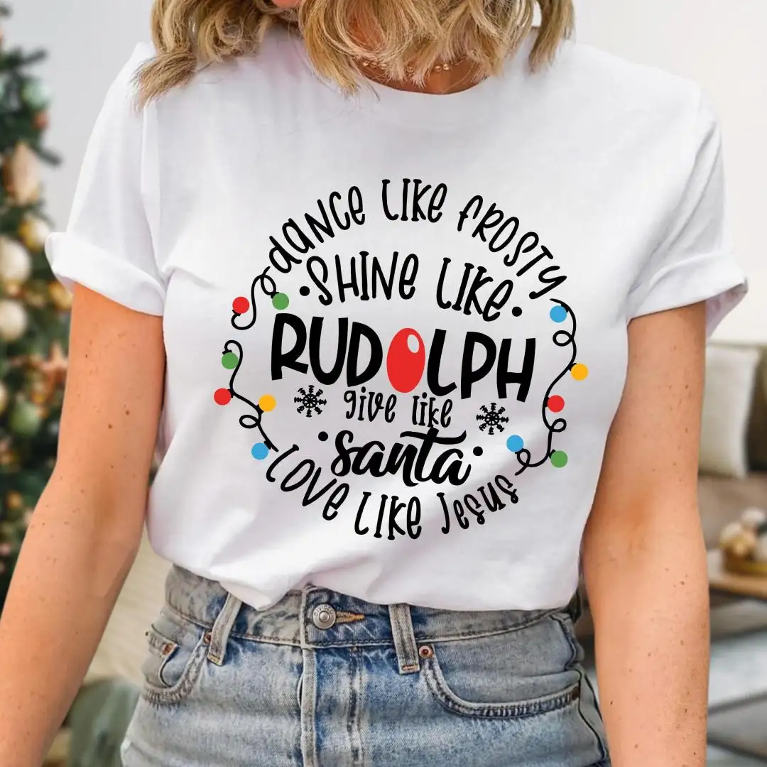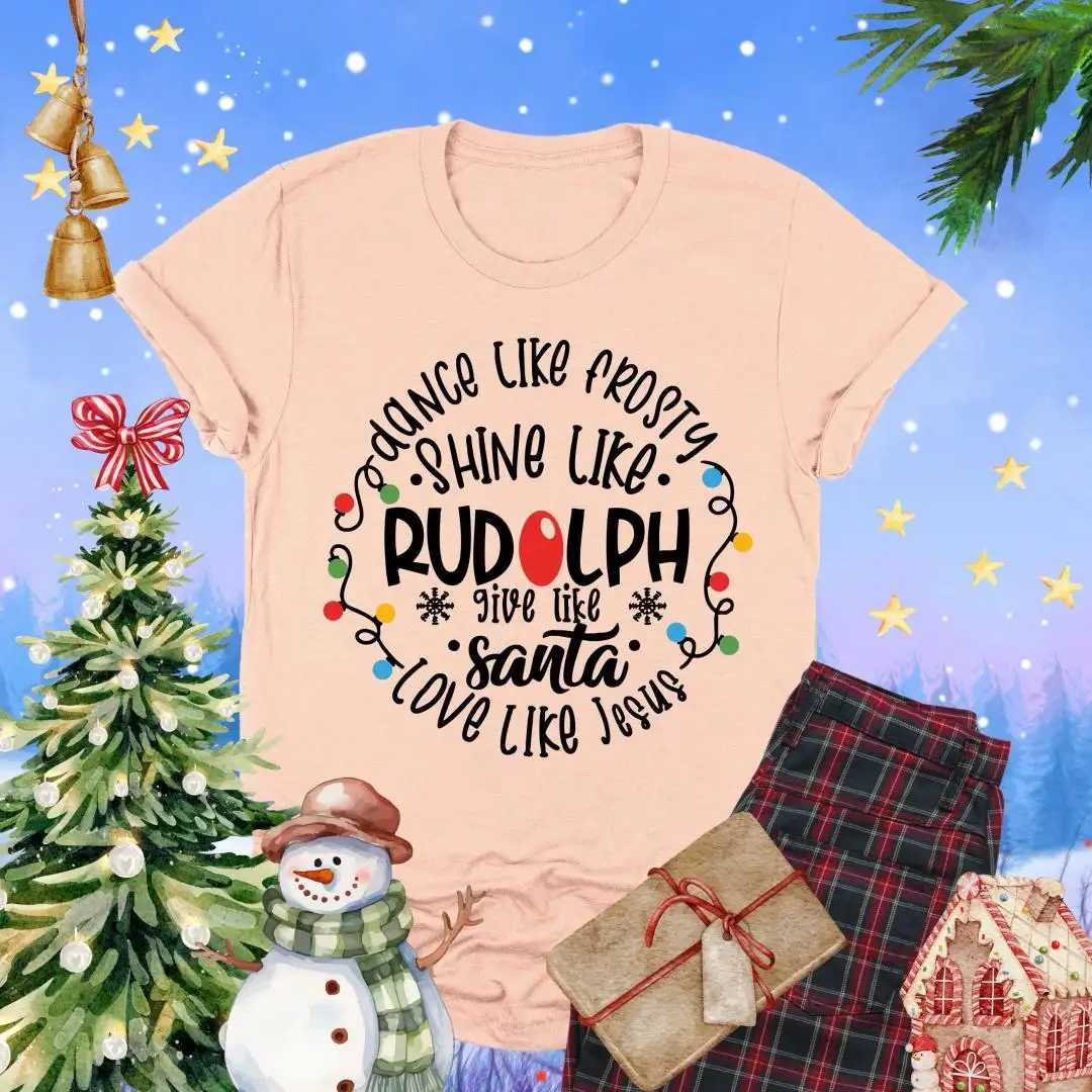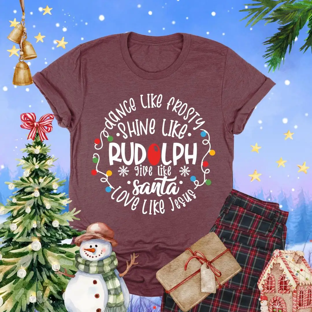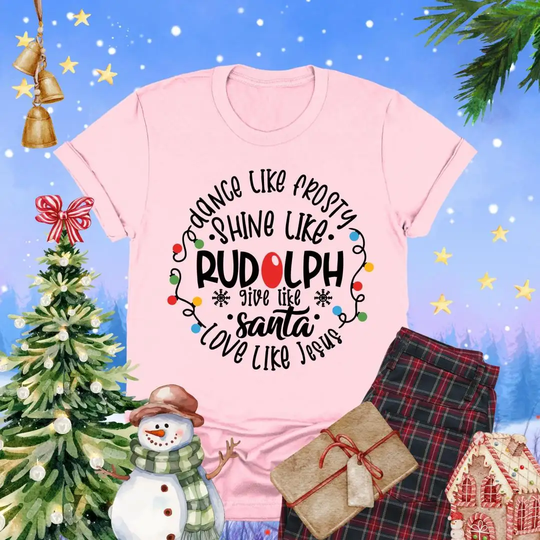 Dance Like Frosty Shine Like Rudolph Shirt, Faith Holiday Top, Reindeer Tee, Give Like Santa Love Like Jesus Tee, Christian Christmas TShirt