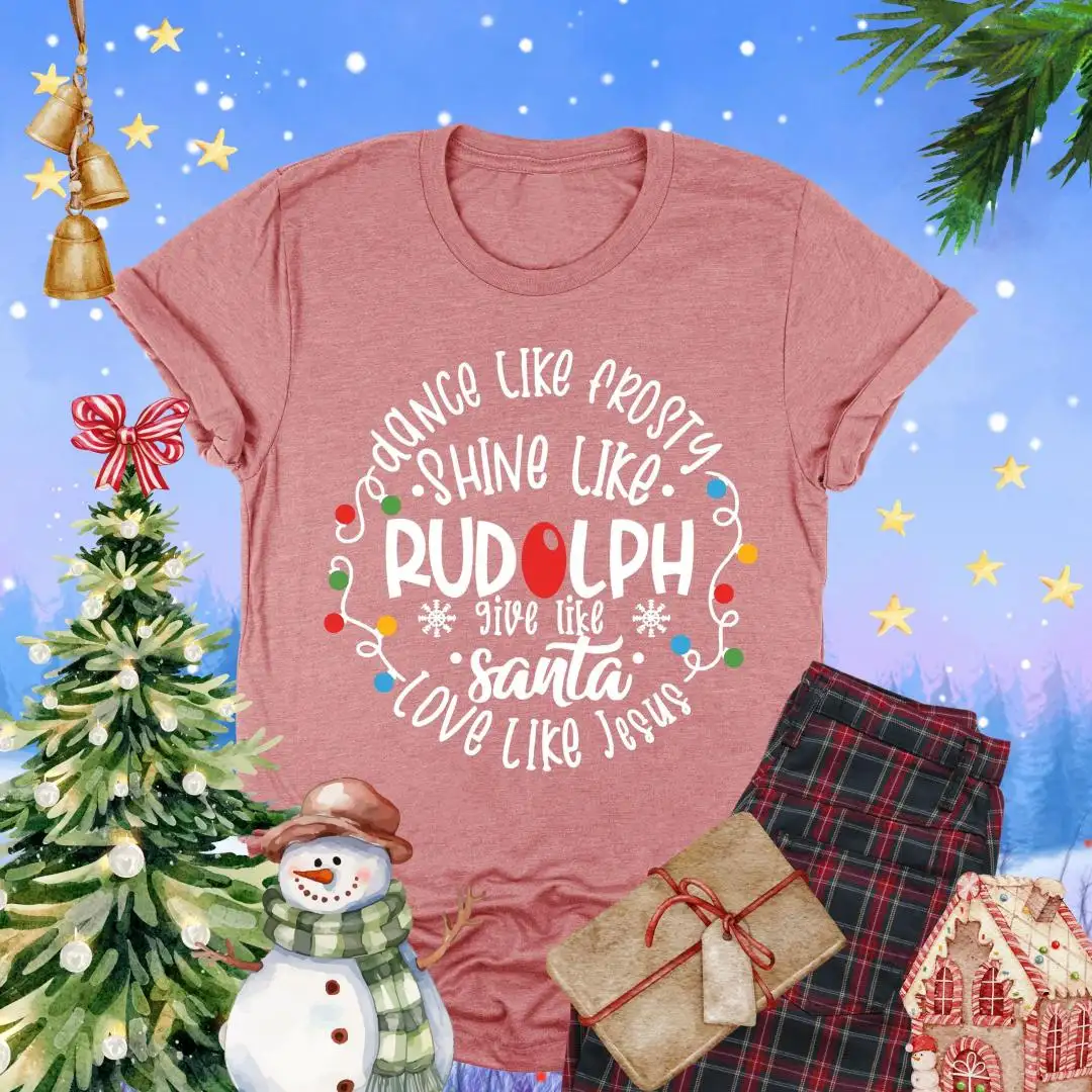 Review Dance Like Frosty Shine Like Rudolph Shirt, Faith Holiday Top, Reindeer Tee, Give Like Santa Love Like Jesus Tee, Christian Christmas TShirt