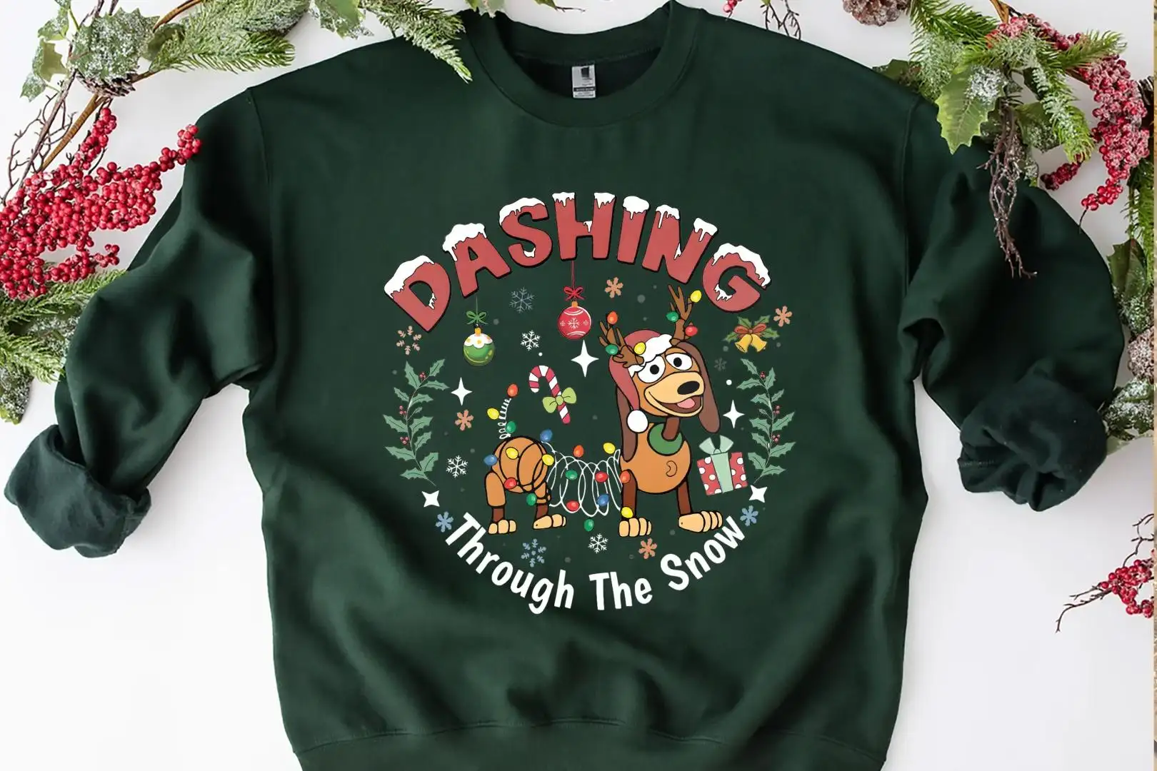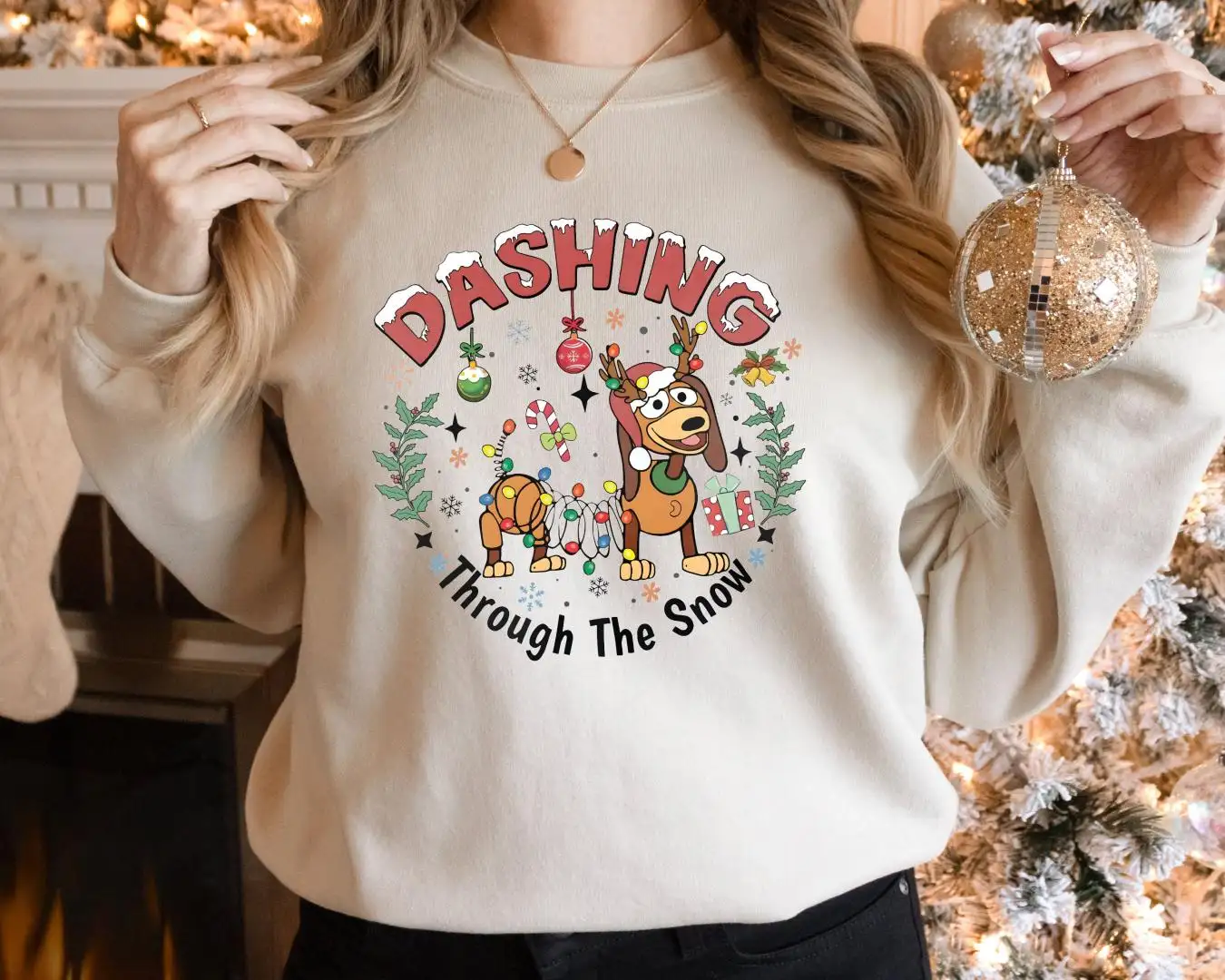 Dashing Through The Snow Shirt, Family Xmas Trip Shirt, Pixar Christmas Shirt, Toy Story Slinky Dog Christmas Shirt, Disney Xmas Sweater