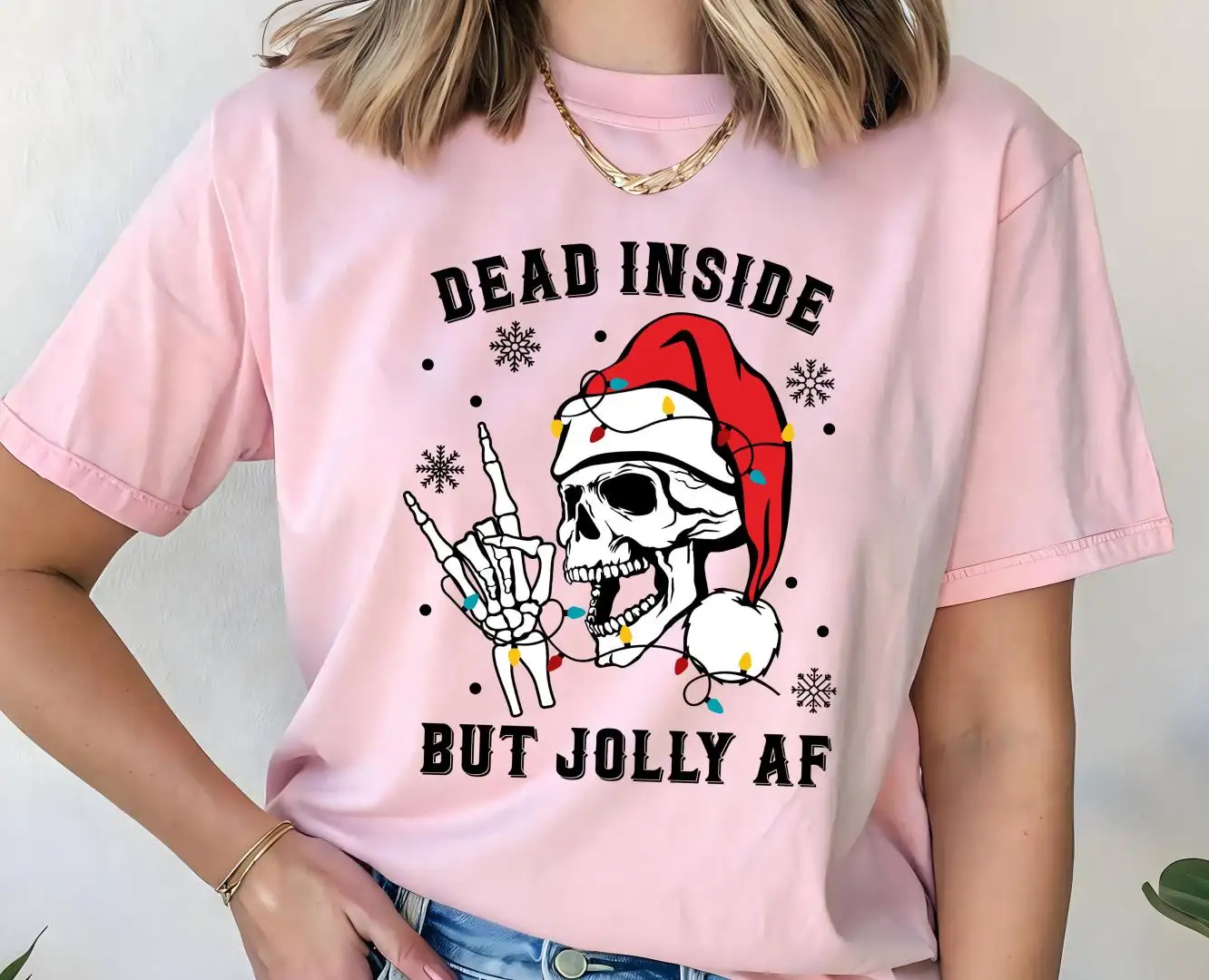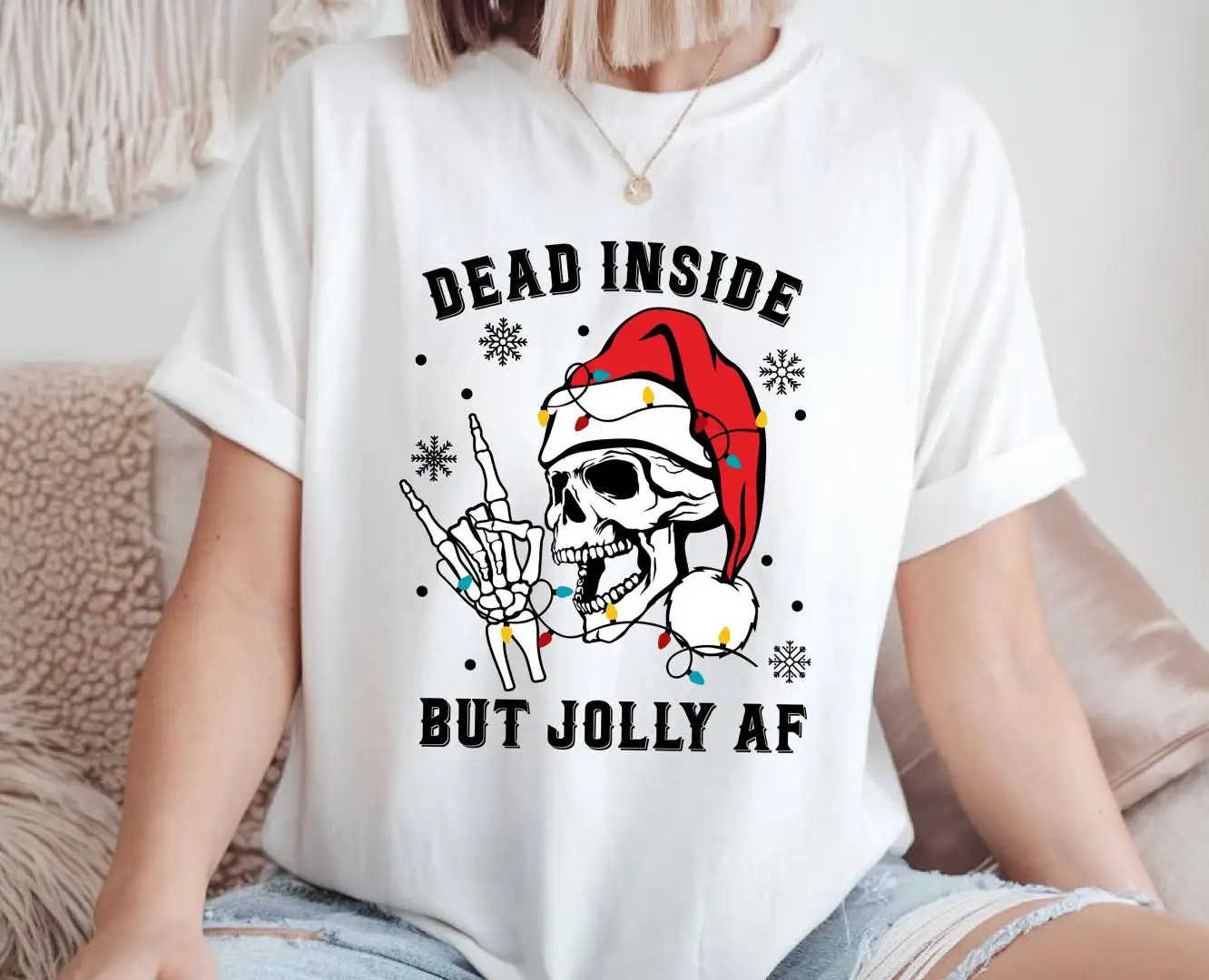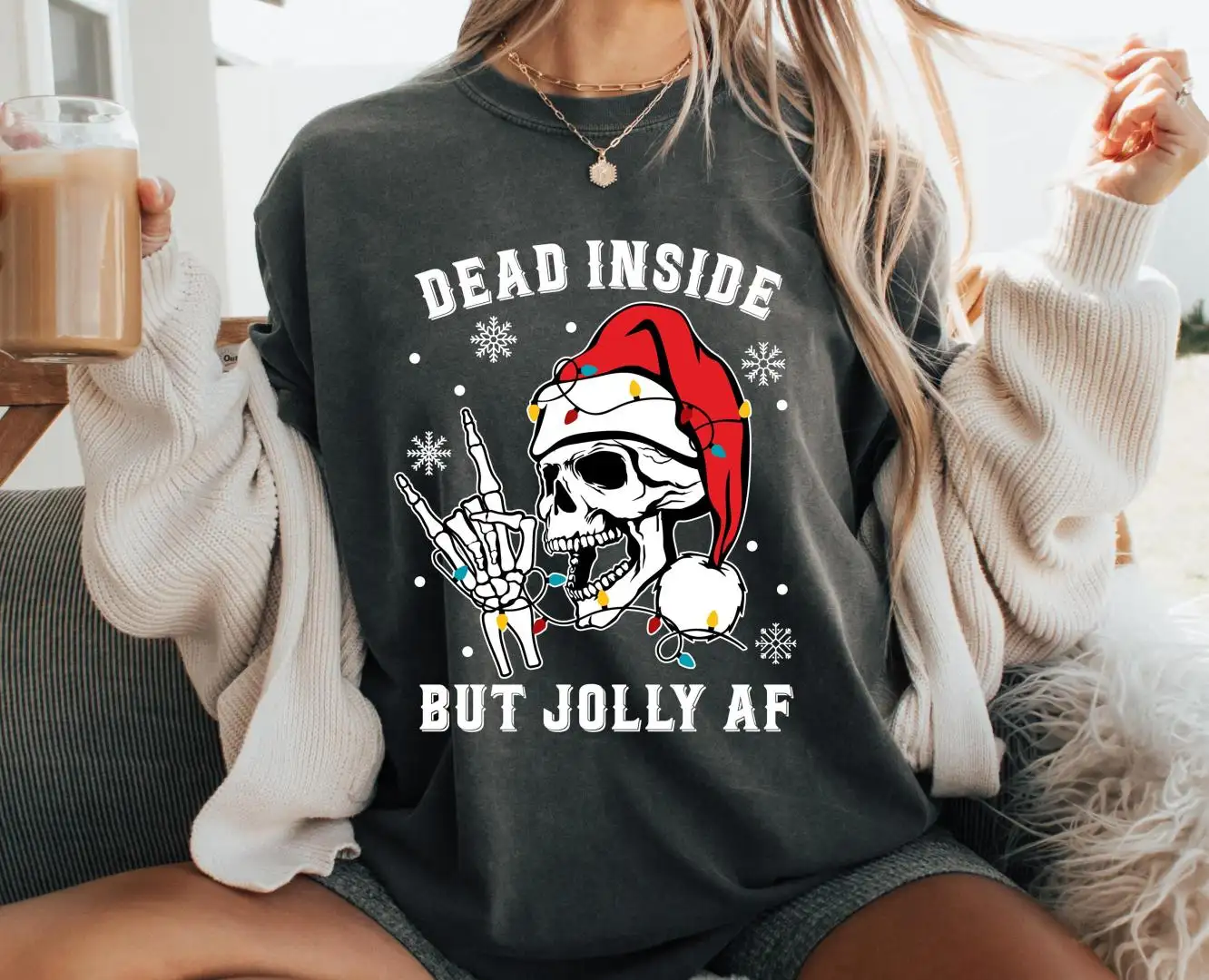 Dead Inside But Jolly AF Sweatshirt, Christmas Holly Spirit, Funny Christmas Tees, Christmas Gift, Christmas Skeleton Sweatshirt