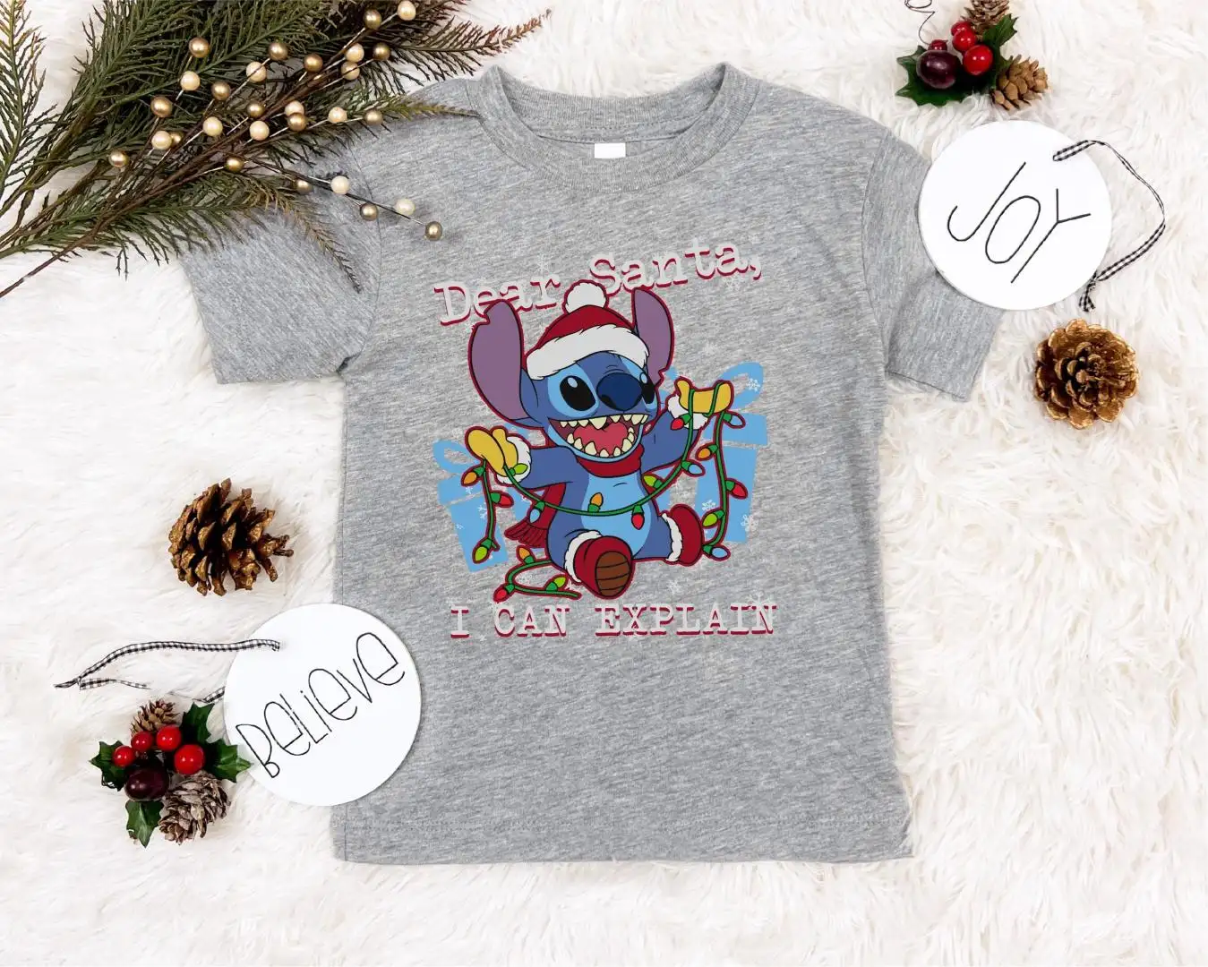 Dear Santa I Can Explain Sweatshirt, Stitch Disney Christmas Shirt, Lilo and Stitch Kids Christmas Tee, Disney Family Christmas Party 2025