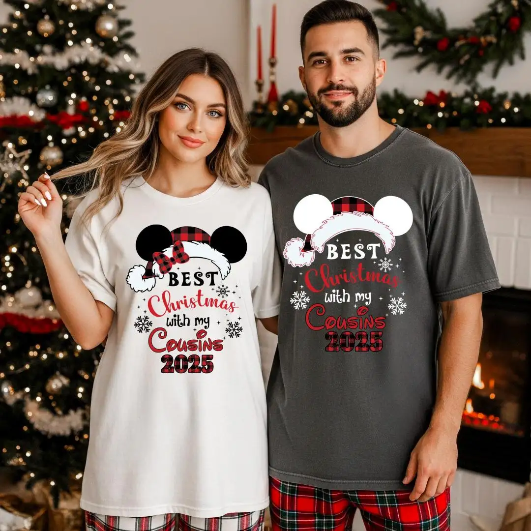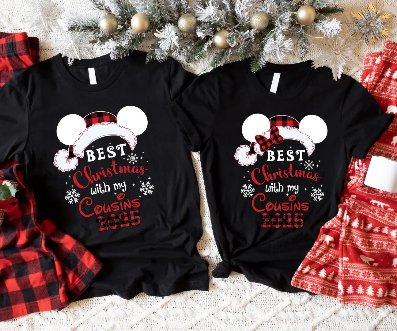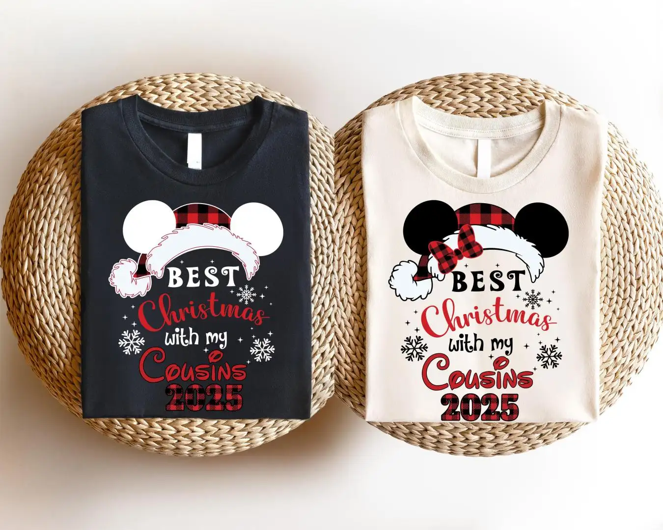 Disney Best Christmas With My Cousins 2025 Shirt, Disneyland Cousins Matching Xmas Shirt, Mickey Minnie Head Xmas Shirt, Family Holiday Tee