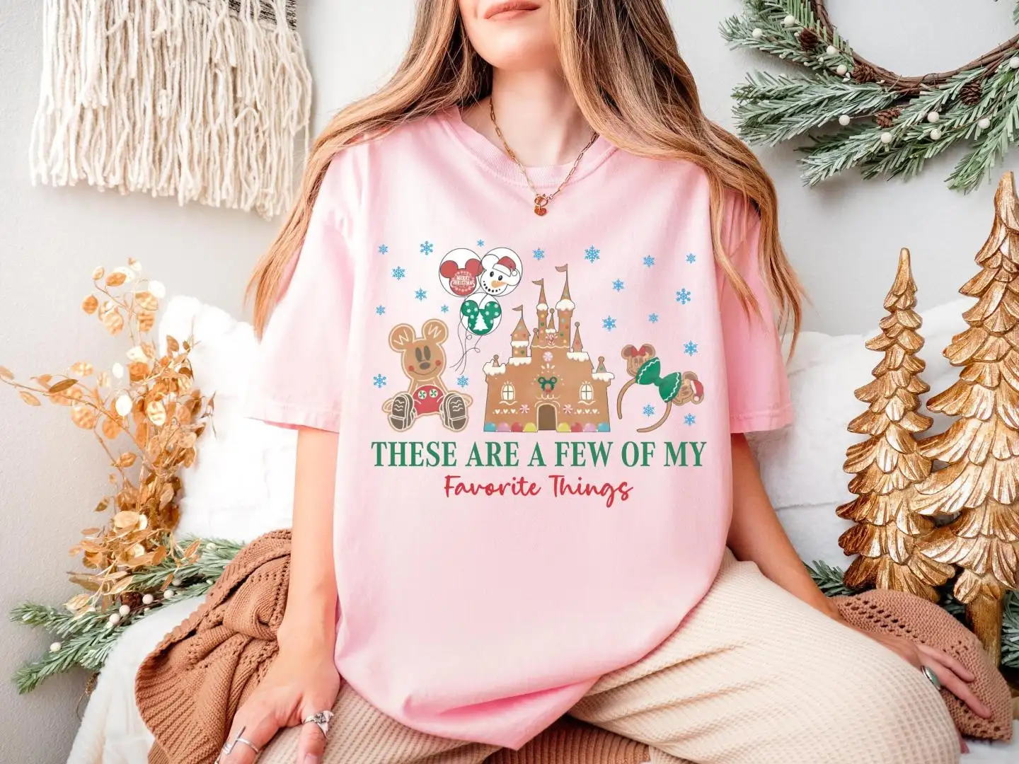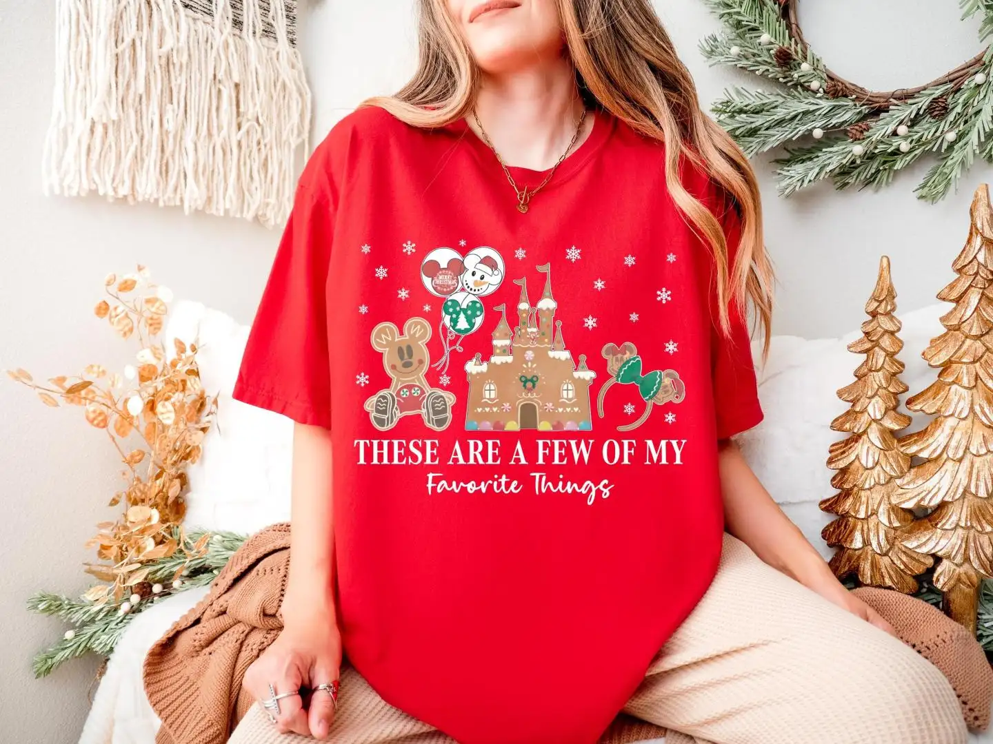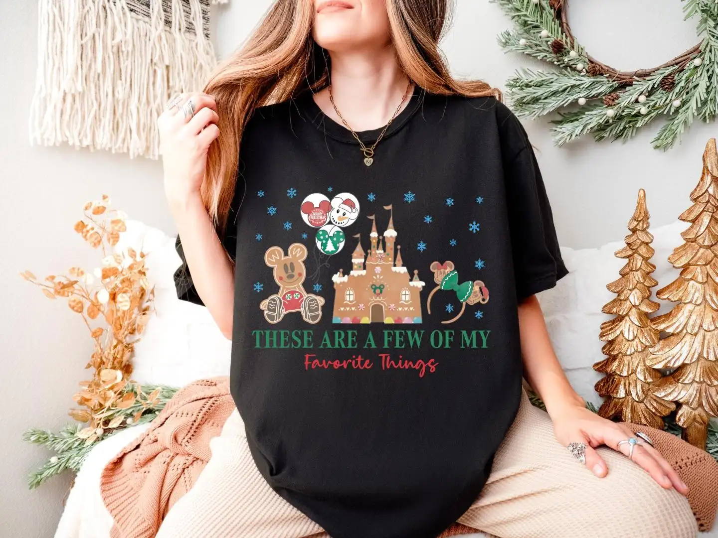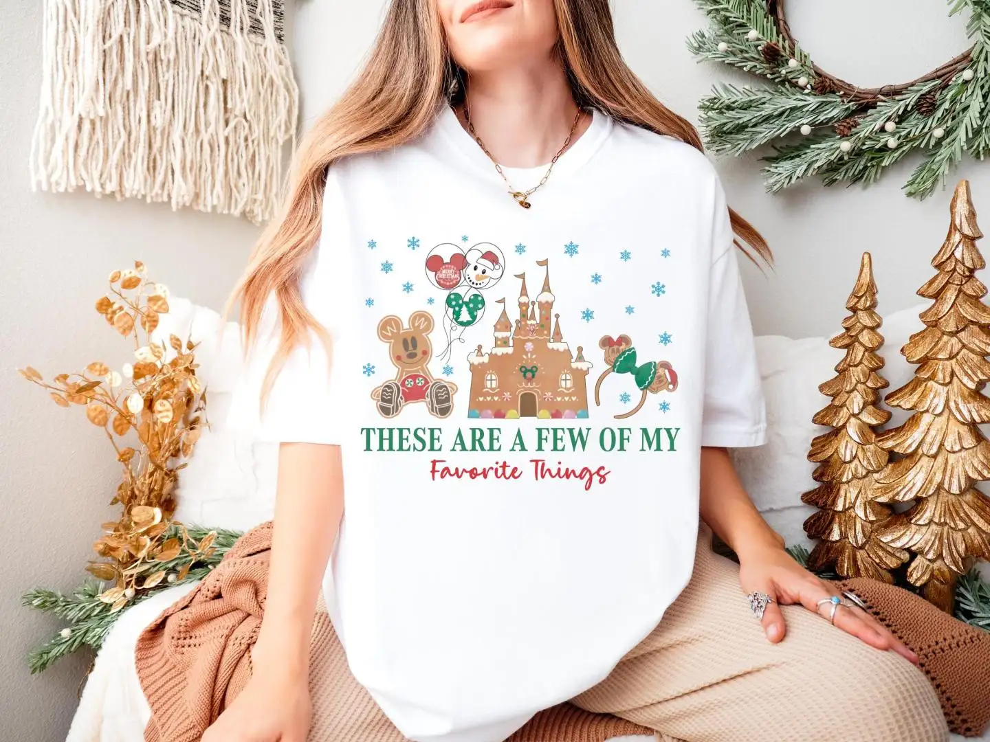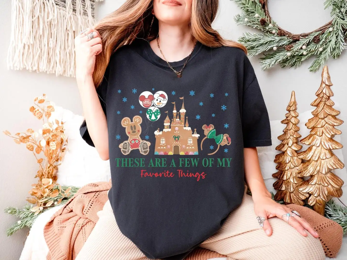Disney Castle Gingerbread Shirt, Family Xmas Holiday Gift, Xmas These Are A Few Of My Favorite Things Sweatshirt, Mickey & Minnie Cookie Tee