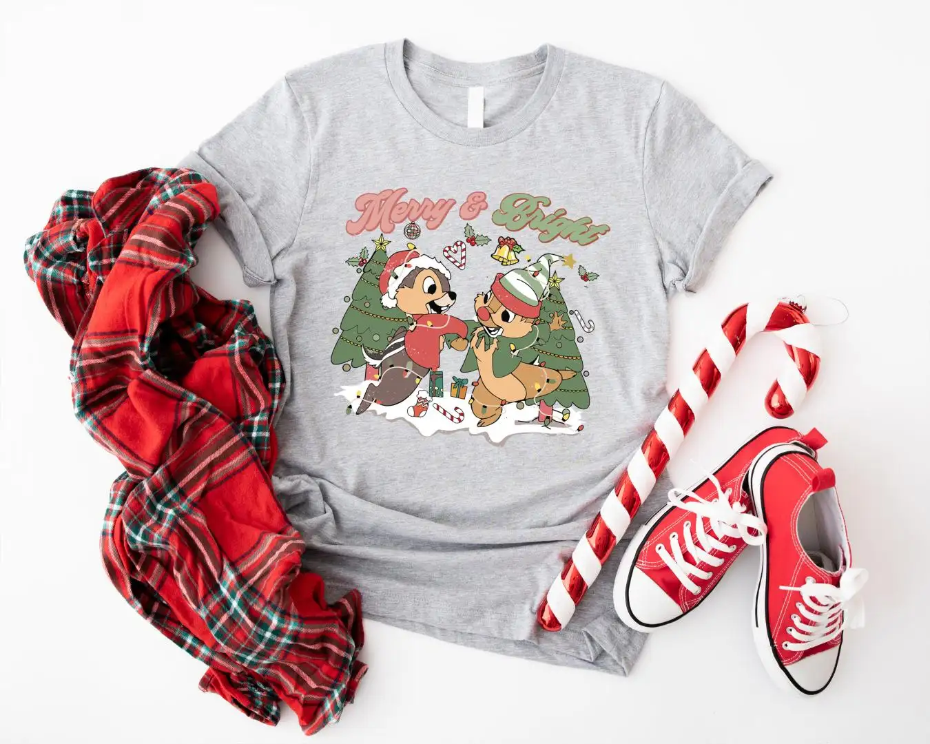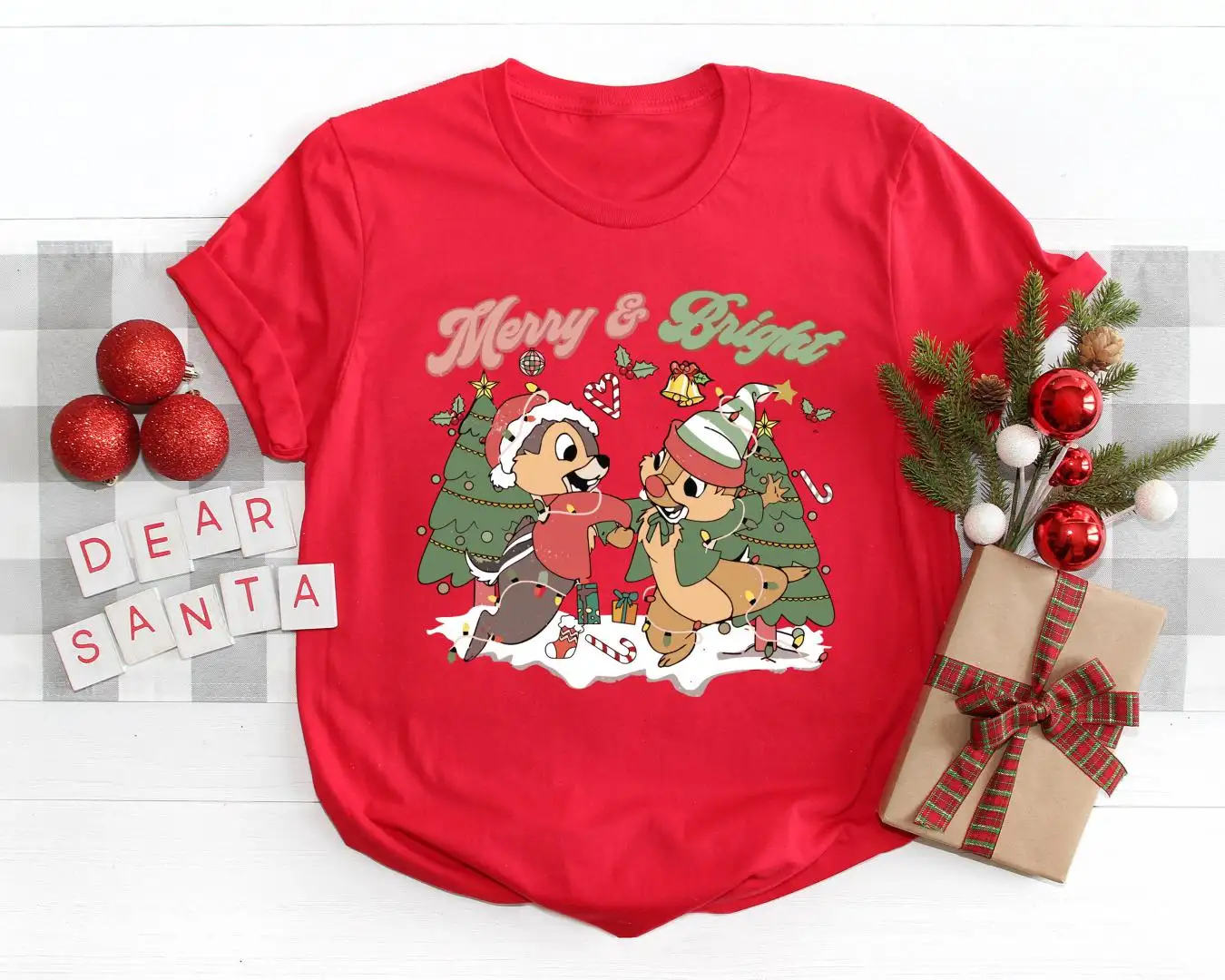 Disney Chip n Dale Christmas Shirt, Disneyland Vacation Holiday Shirt, Merry Bright Shirt, Very Merry Xmas Shirt, Double Trouble Xmas Shirt
