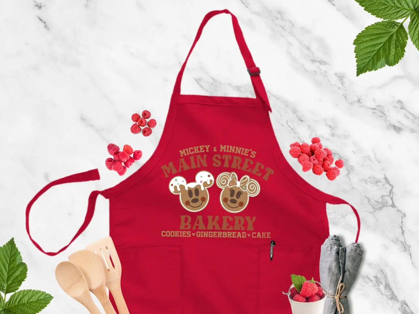 Disney Christmas Apron, Gift For Mama, Christmas Apron, Adjustable Apron, Cookie Apron, Minnie and Mickey Gingerbread Apron, Baking Crew