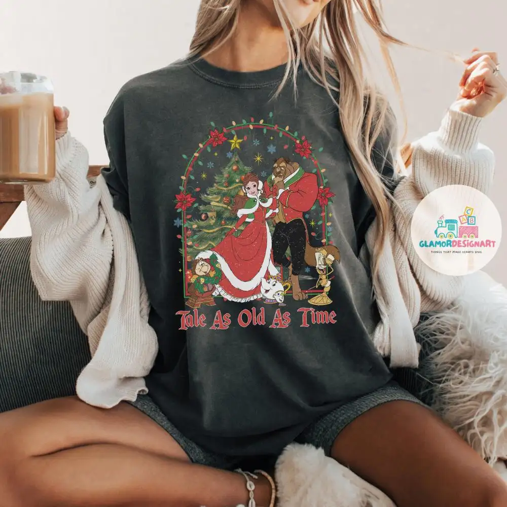Disney Christmas Beauty and the Beast Shirt Tale as old as time Shirt Disneyland Christmas, Disney Xmas Trip Disney Princess Christmas Shirt