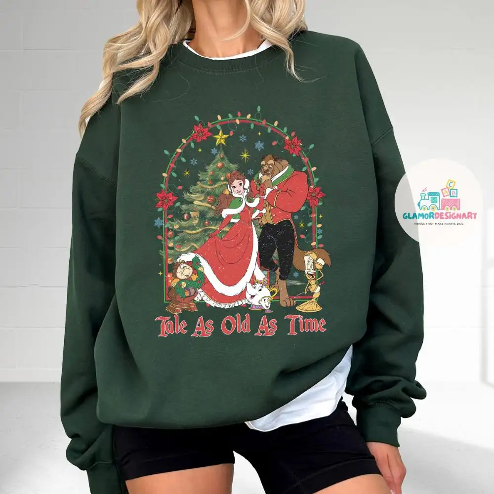 Review Disney Christmas Beauty and the Beast Shirt Tale as old as time Shirt Disneyland Christmas, Disney Xmas Trip Disney Princess Christmas Shirt