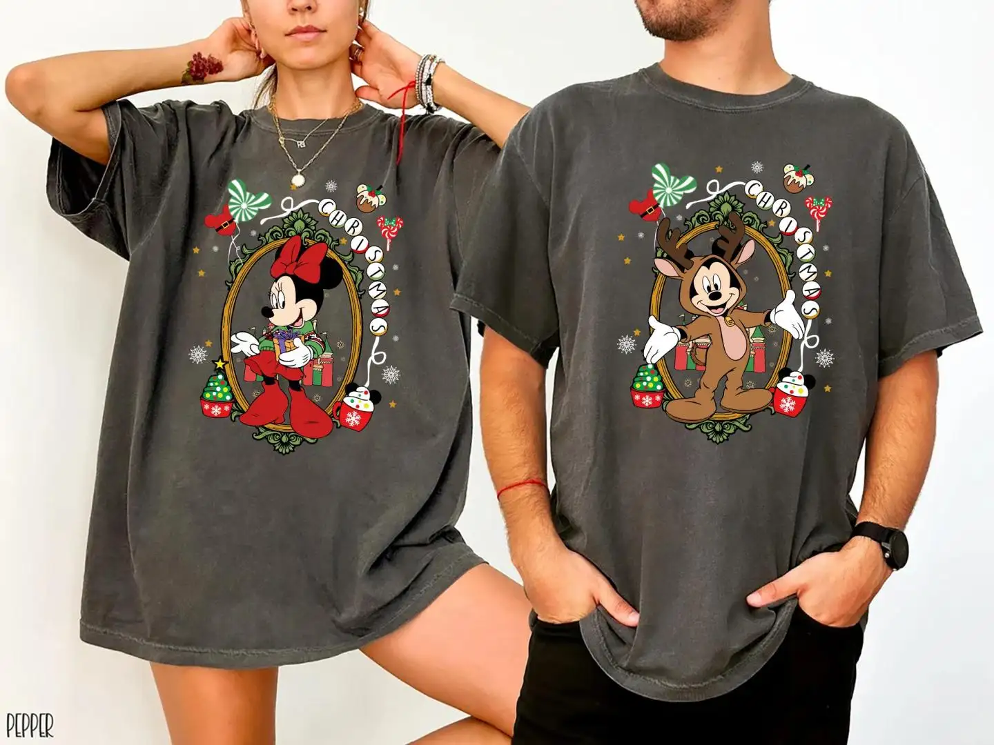 Disney Christmas Mickey Minnie Reindeer Holiday Shirt