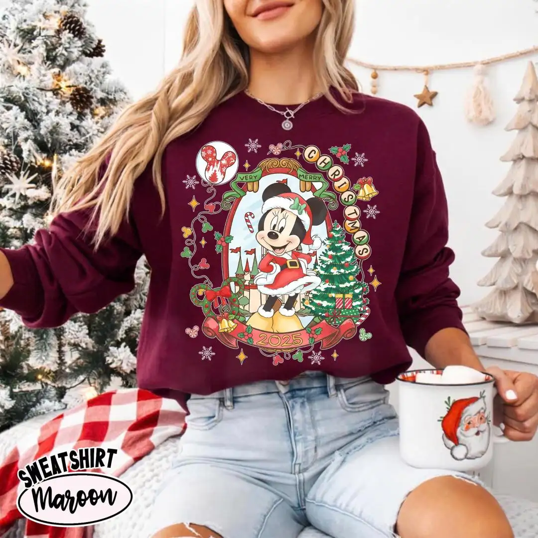 Disney Christmas Shirt Coquette Mickey Holiday Lights