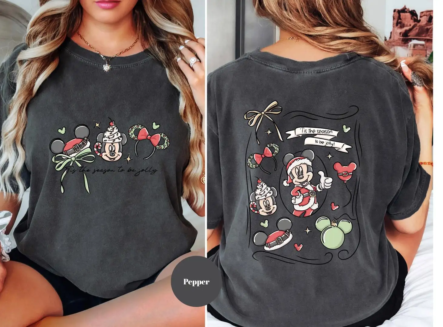 Disney Christmas Shirt for Women with Coquette Bow