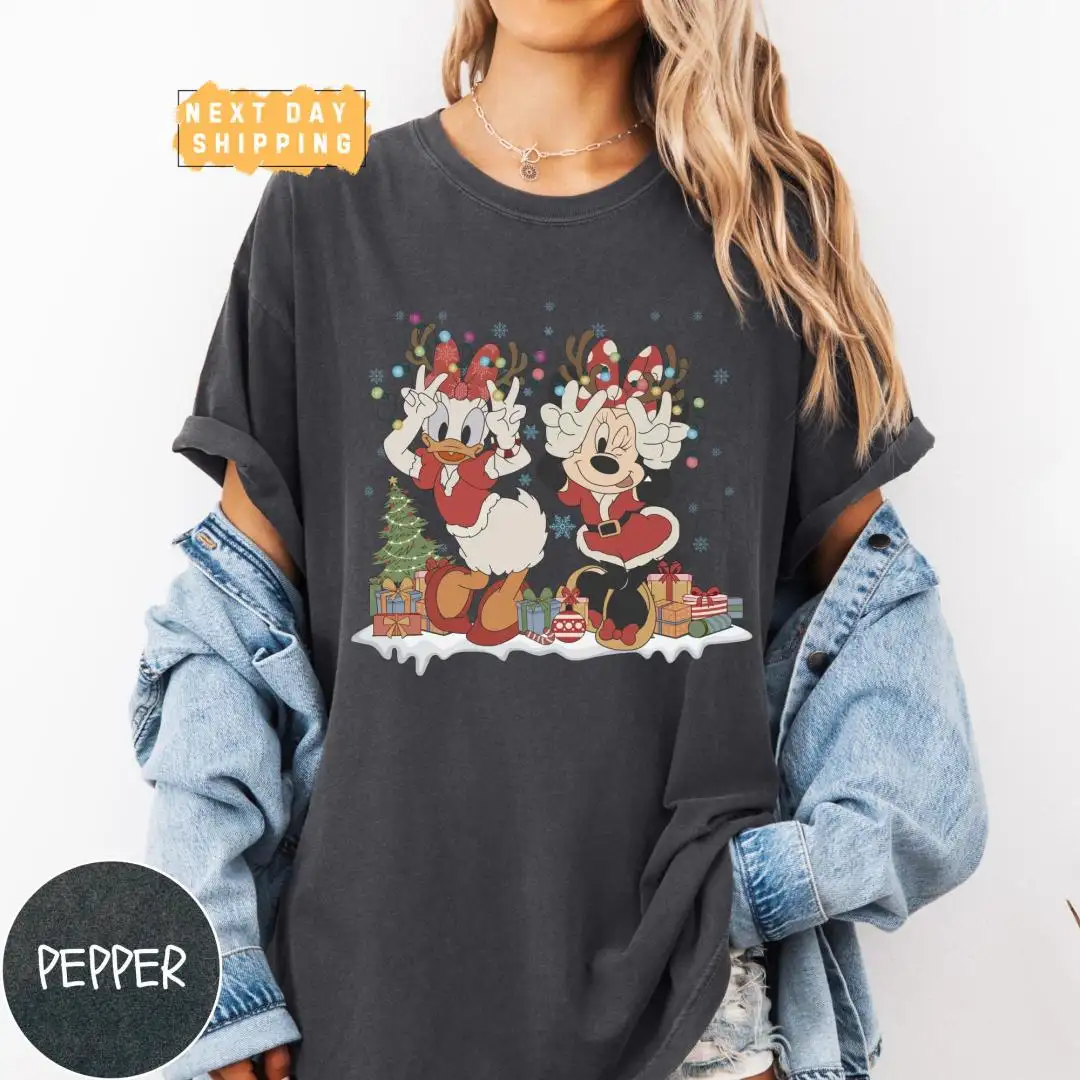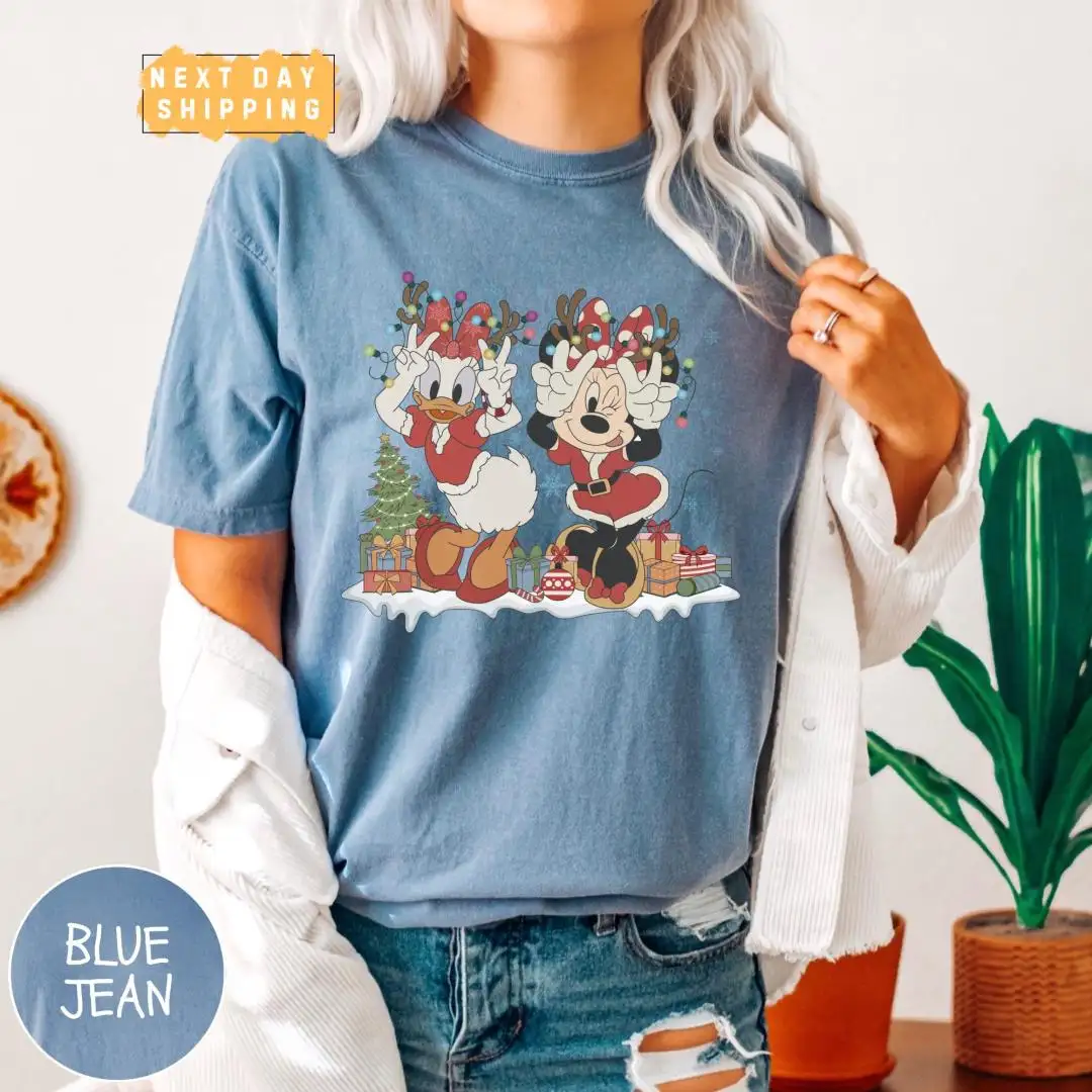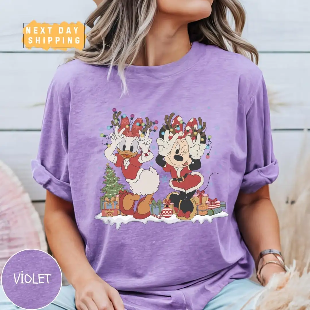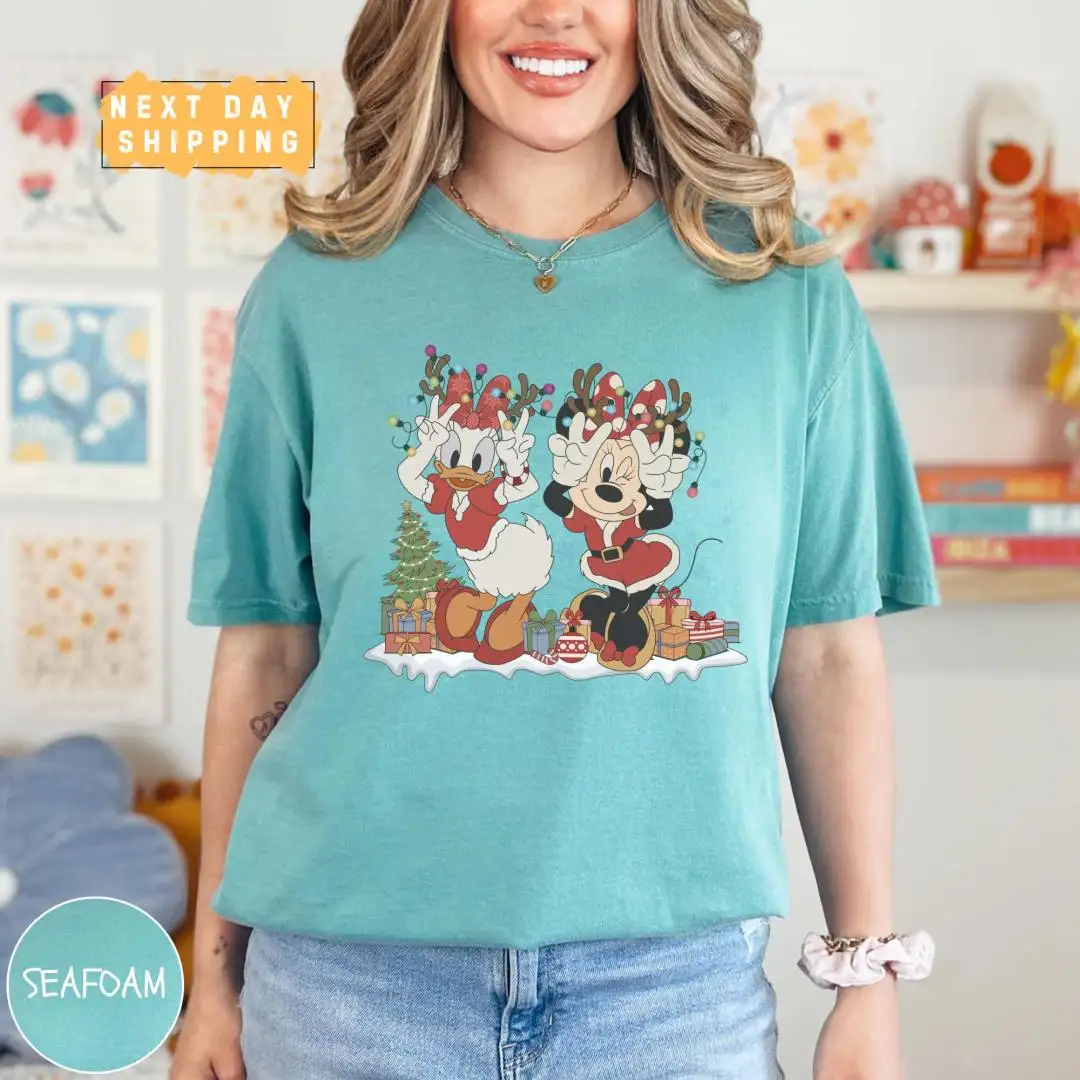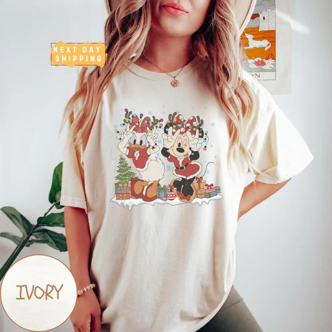 Disney Christmas Shirt for Women with Retro Minnie Daisy Reindeer