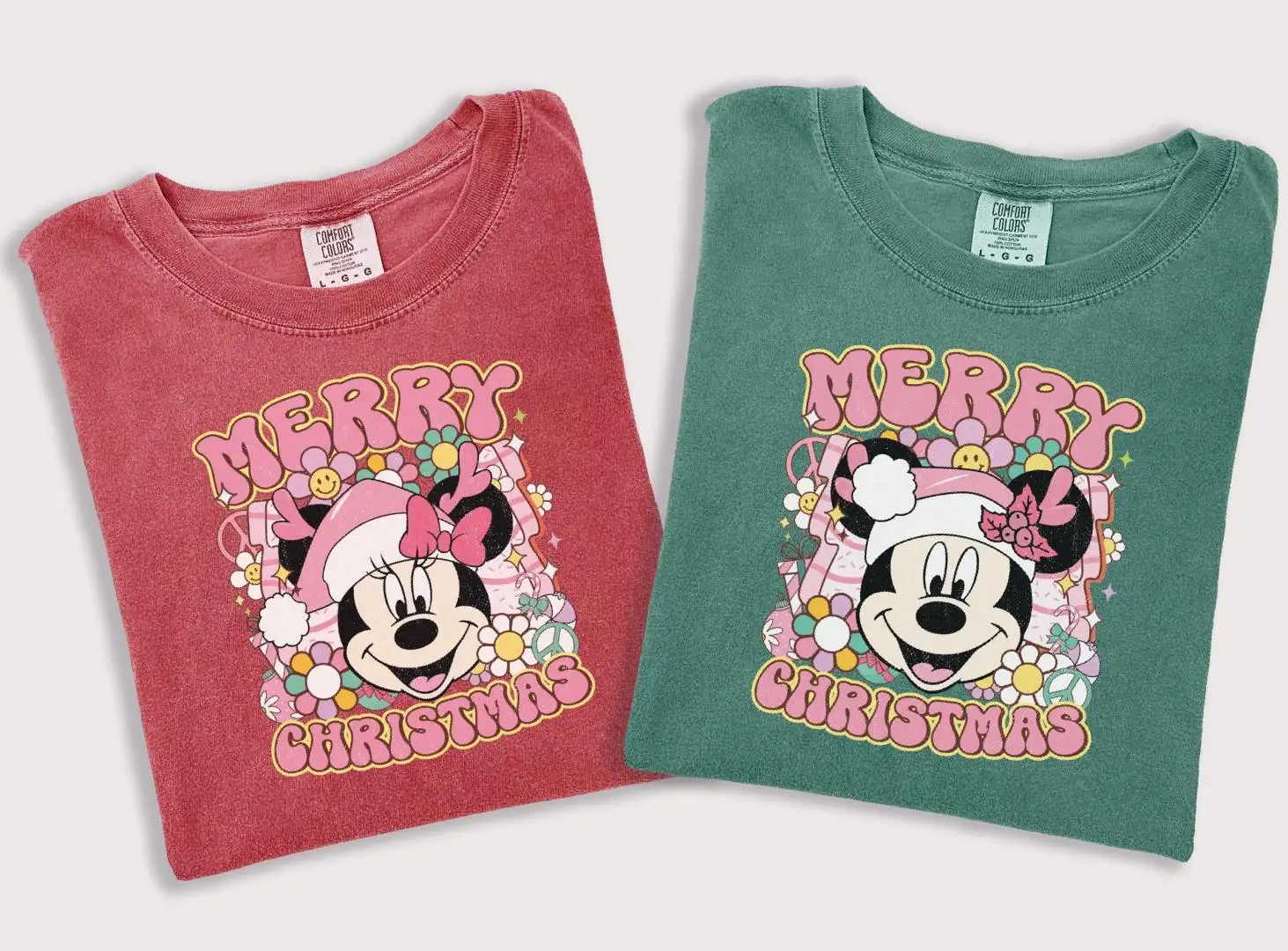 Disney Christmas Shirt | Groovy Floral Mickey Couple Apparel