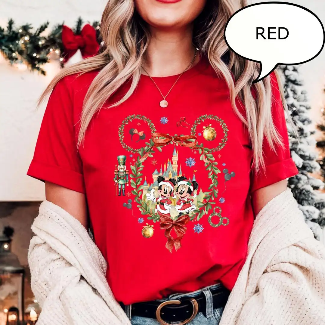 Review Disney Christmas Shirt with Coquette Bow and Magic Castle