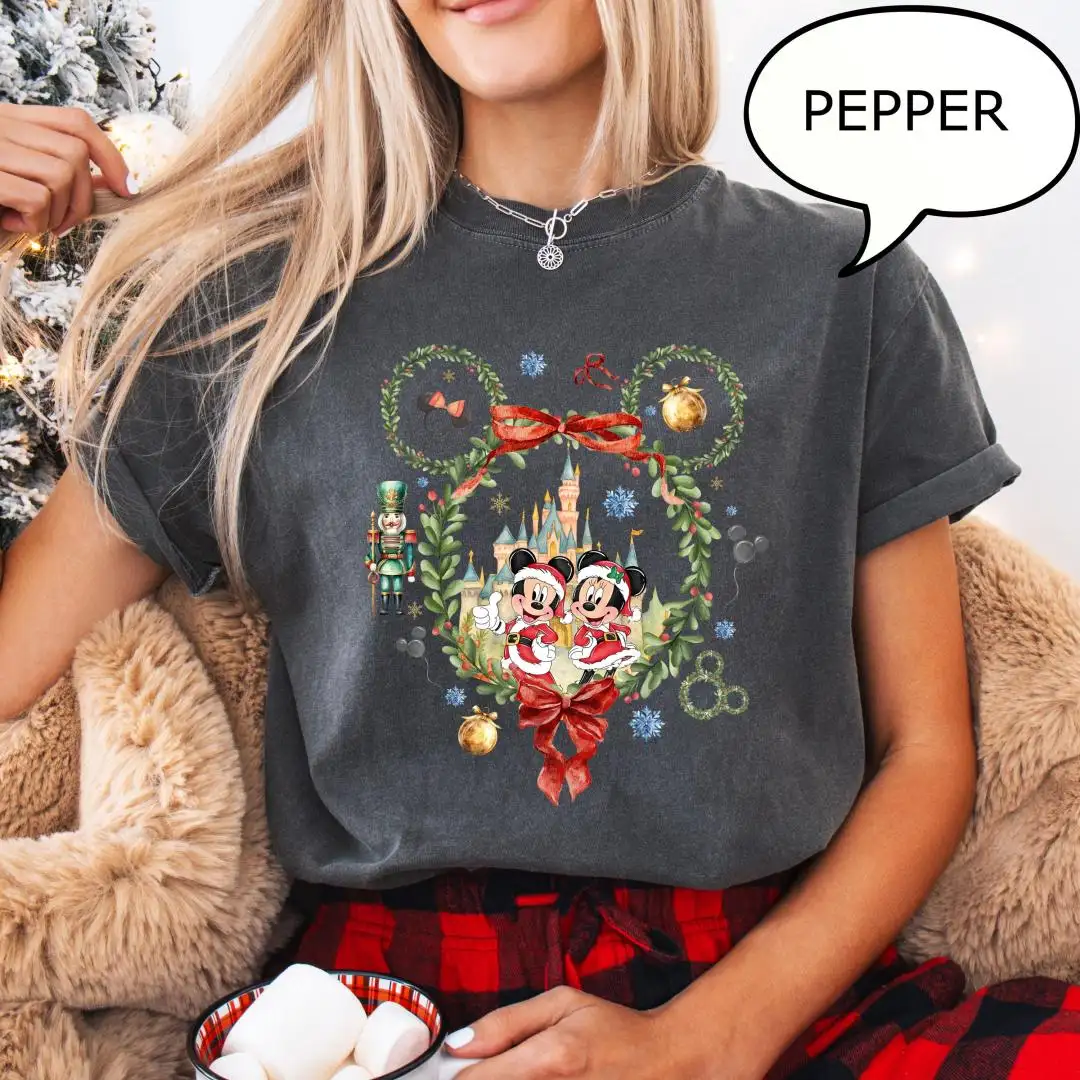 Disney Christmas Shirt with Coquette Bow and Magic Castle