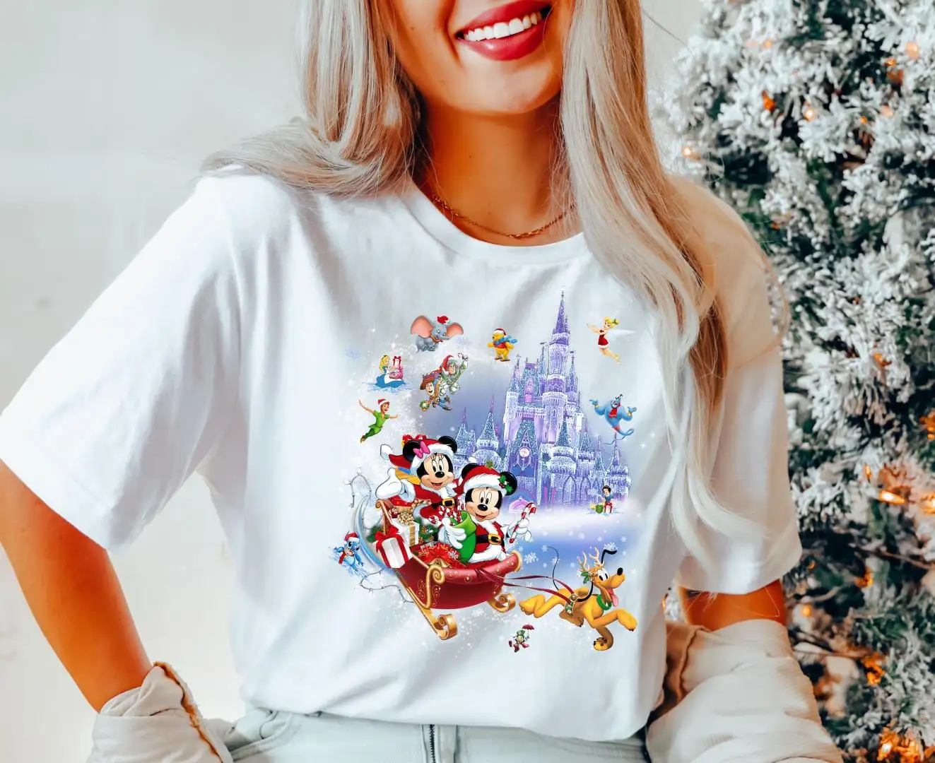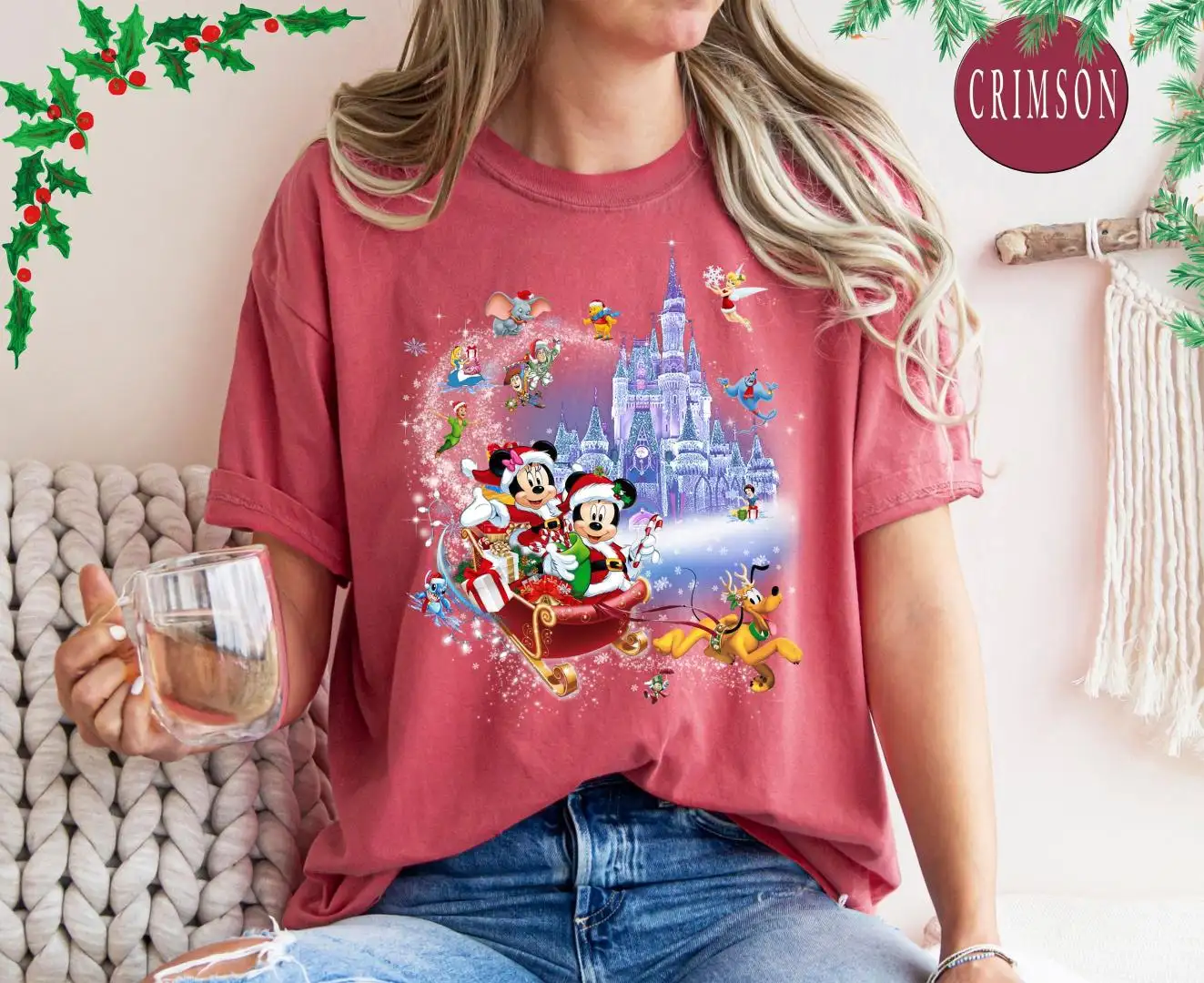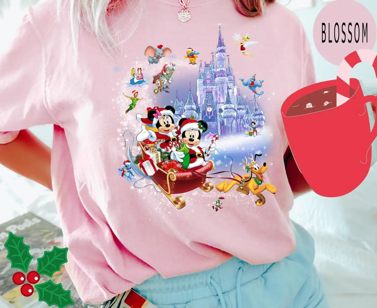 Disney Christmas Shirt with Minnie Mickey Pluto Sleigh Rides