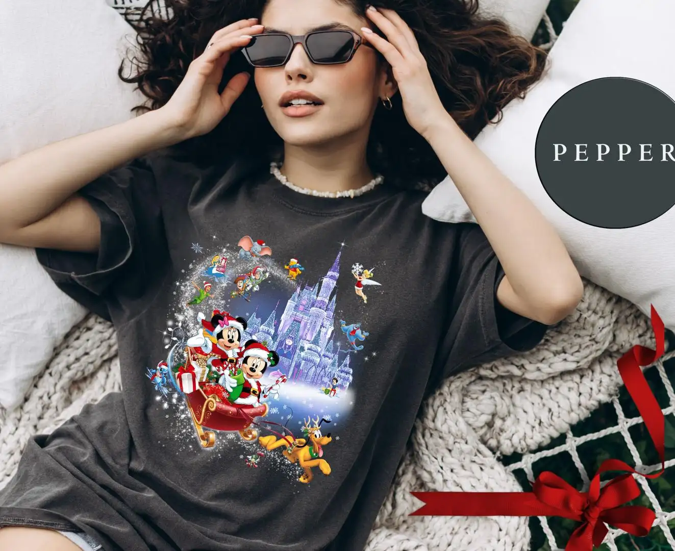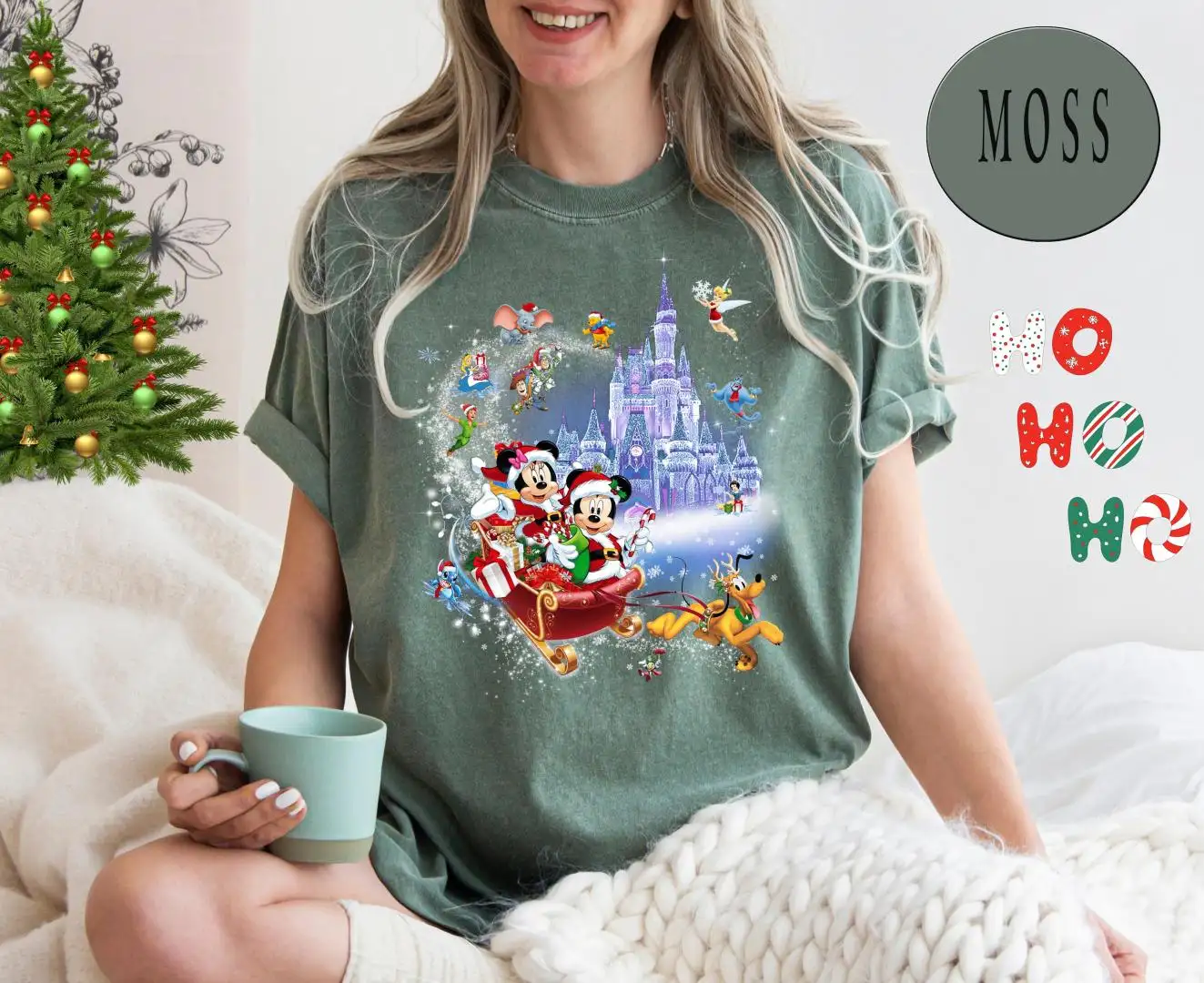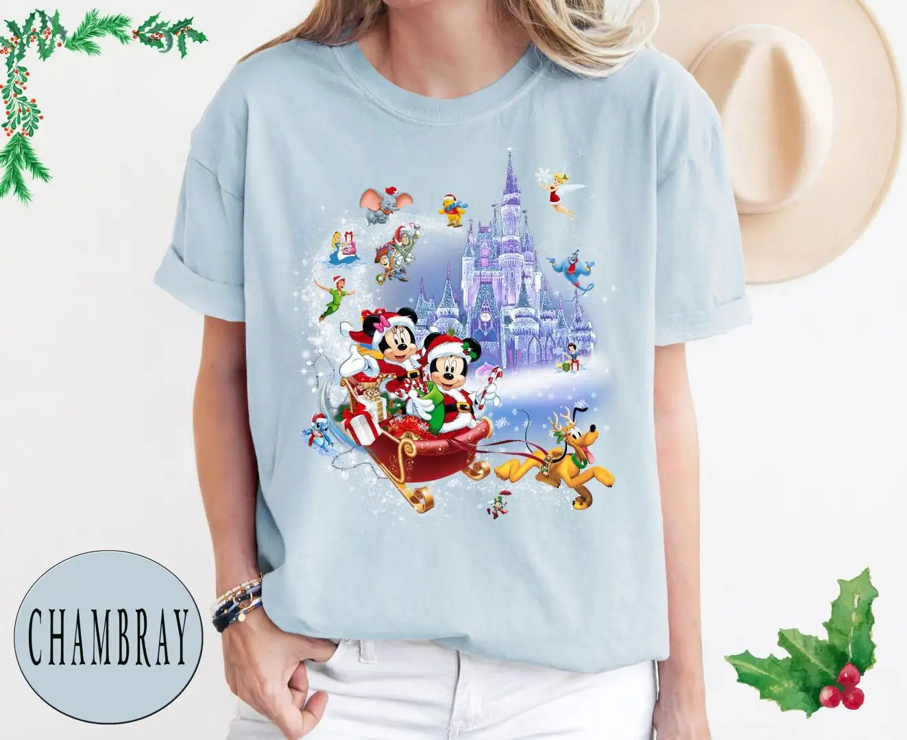 Disney Christmas Shirt with Minnie Mickey Pluto Sleigh Rides