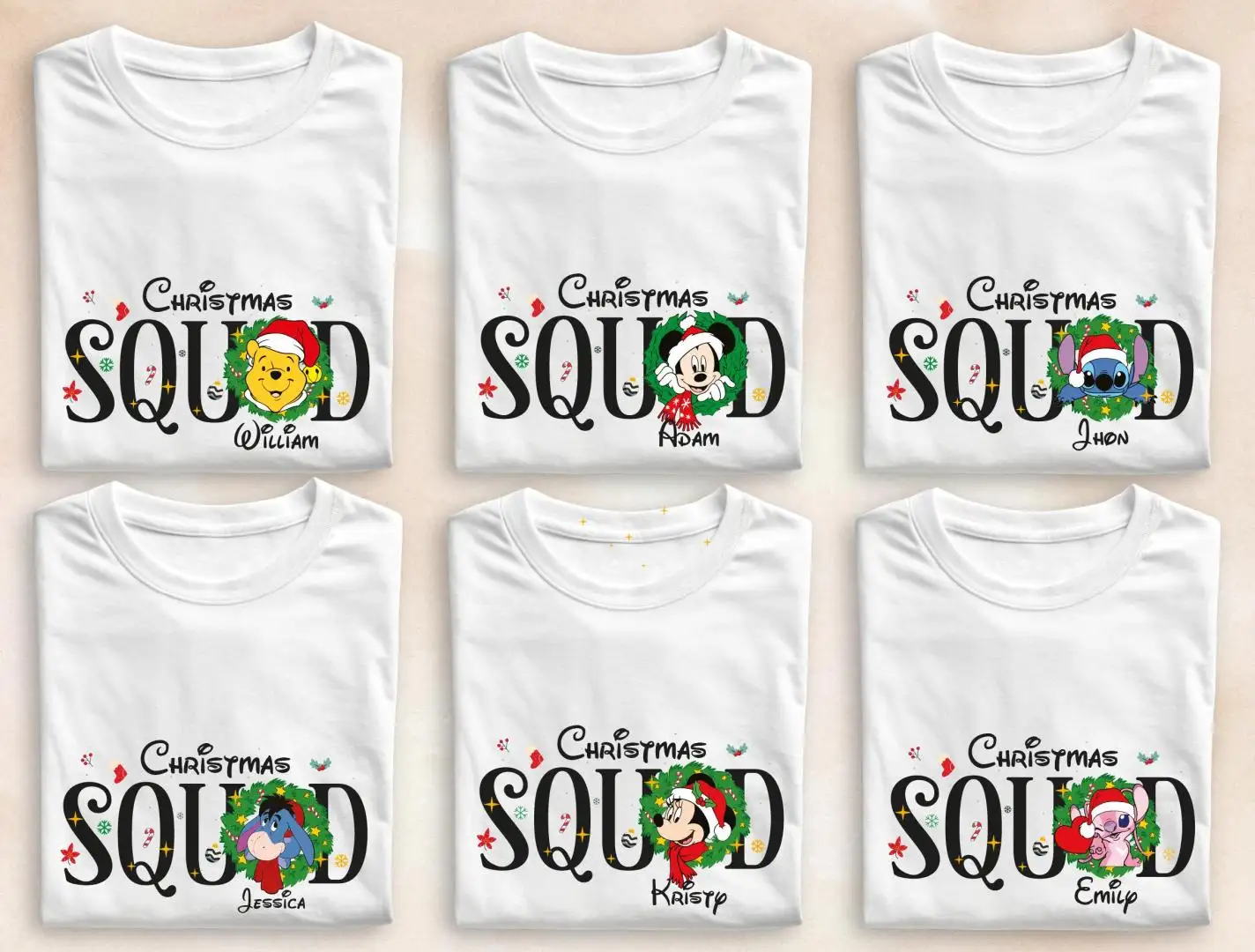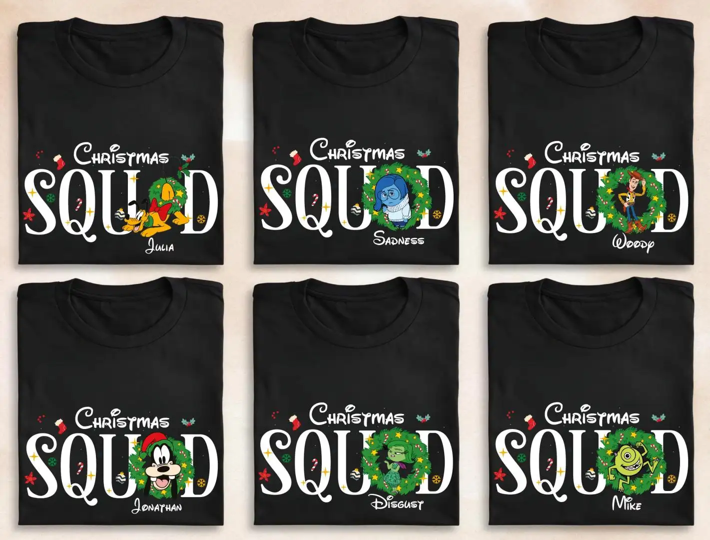 Disney Christmas Squad Custom Shirt, Christmas Squad Family Custom Name Sweater, Disney Characters Christmas Tee, Disney Christmas Matching