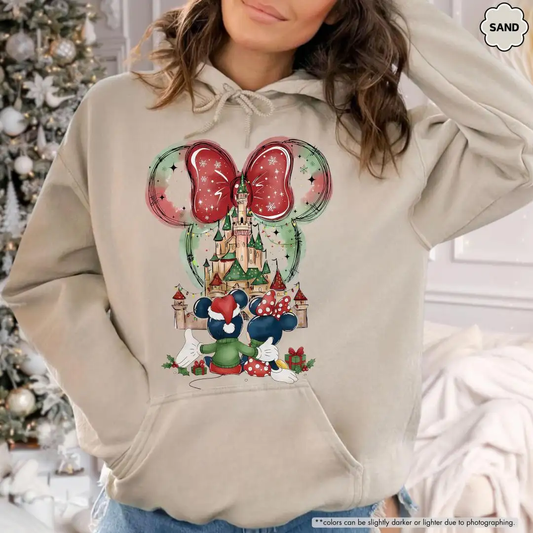 Disney Christmas Sweatshirt For Women, Disneyland Trip Hoodie, Couples Sweater, Minnie Disney Castle Hoodie, Disney Xmas Party 2025 Sweater