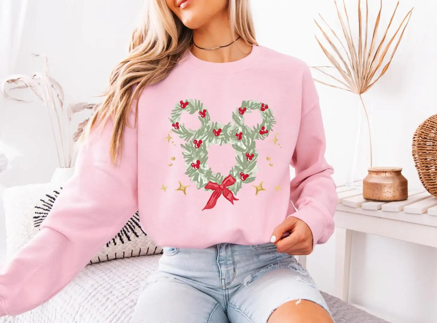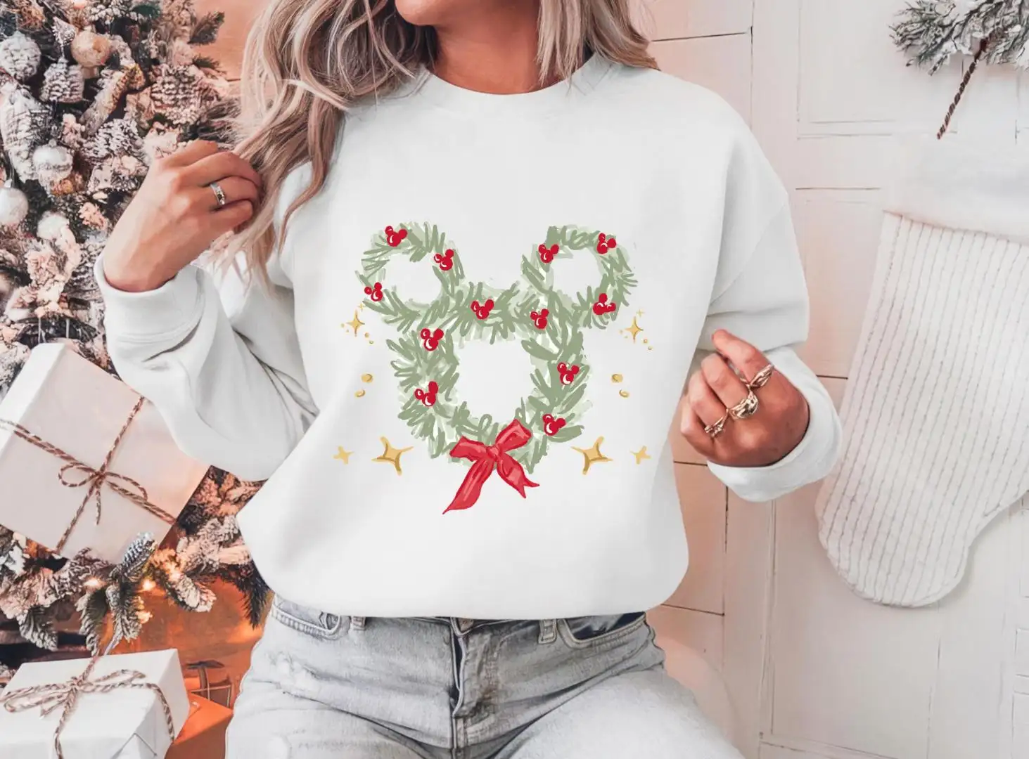 Review Disney Christmas Wreath Sweatshirt Coquette Bow Christmas Mouse Ear Shirt Disneyland Mickey Xmas Tee Holiday 2025 Party Gift