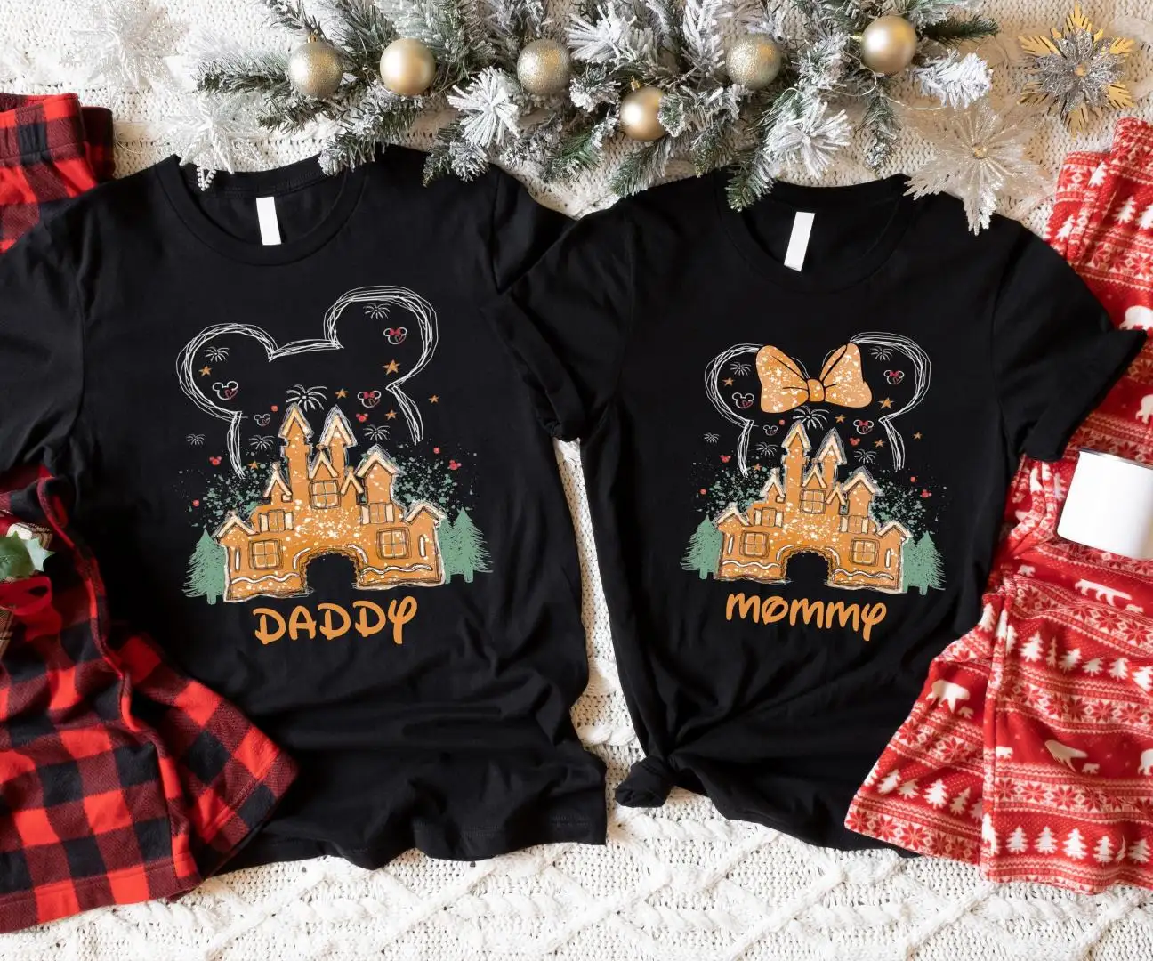 Disney Cookie Castle Couple Christmas Shirt, Mickey Gingerbread Xmas Tee, Disneyland Xmas Trip Gift, Family Matching Christmas Sweatshirt