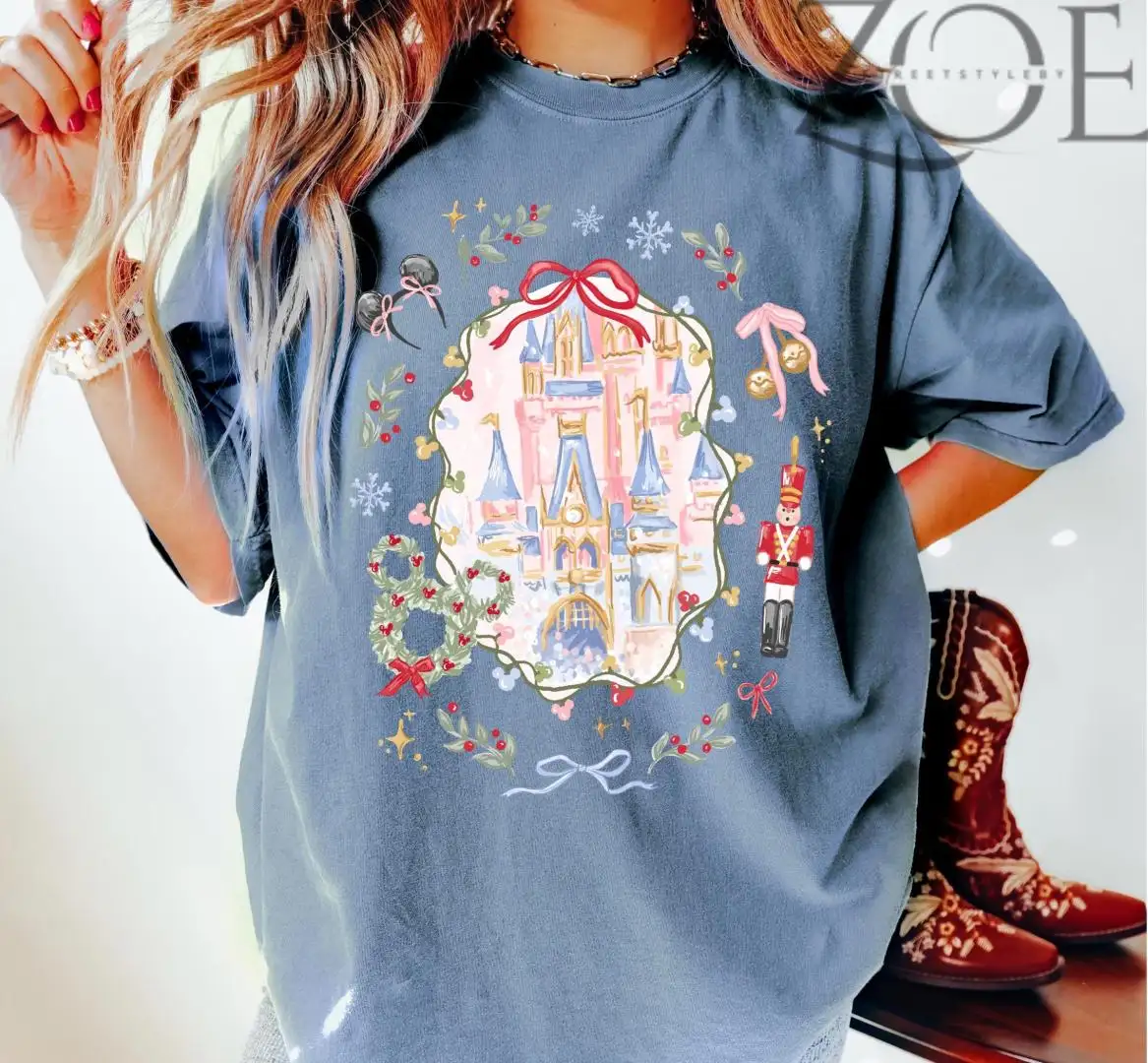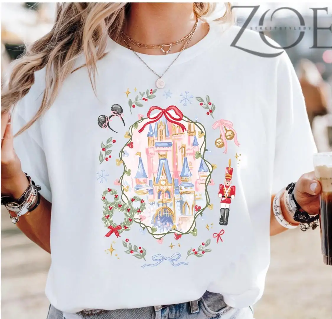 Review Disney Coquette Bow Christmas Castle T Shirt, Merry Christmas Shirt, Mickey and Friends Christmas Shirt, Xmas Gift, Disney Christmas Shirt
