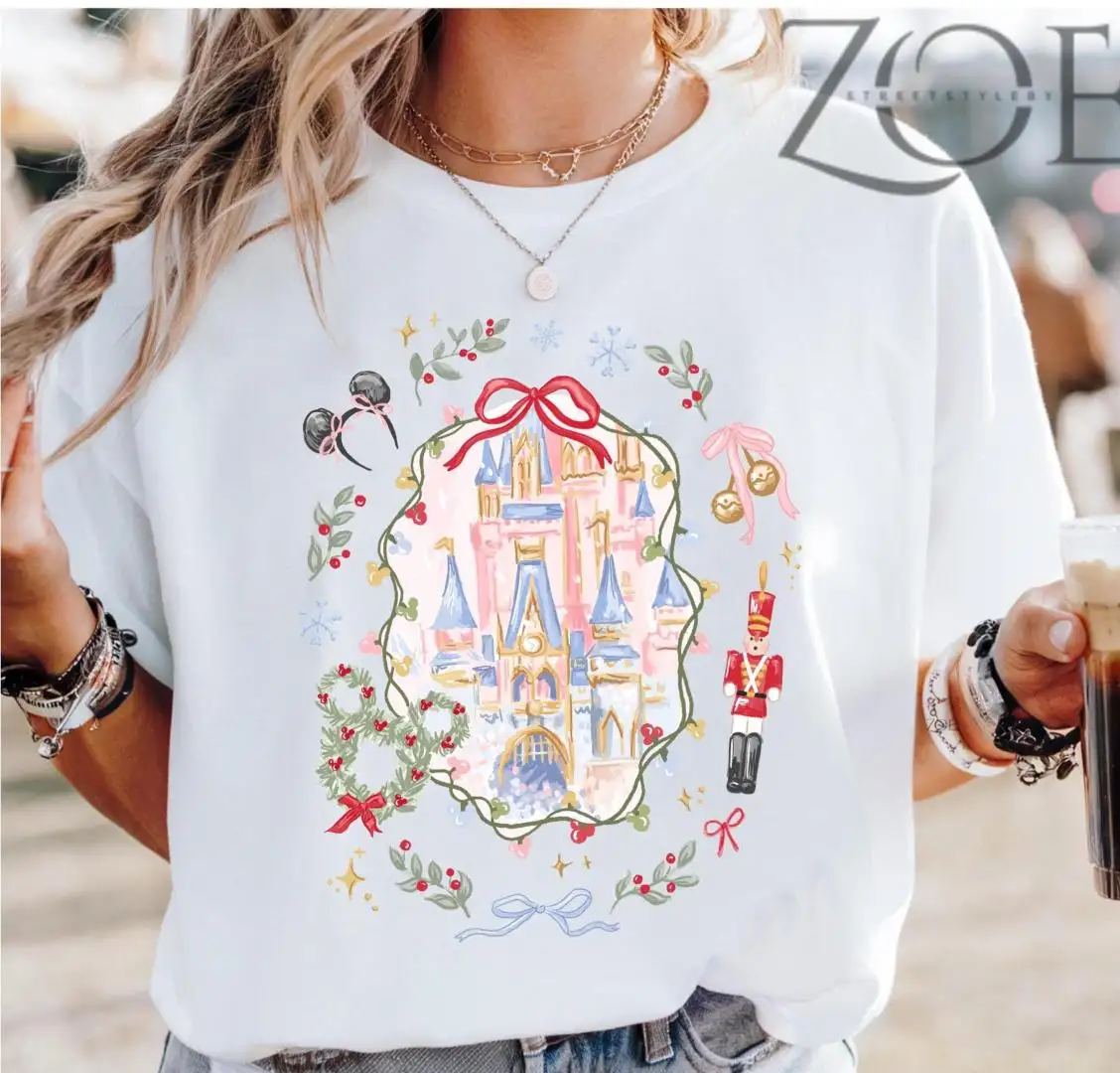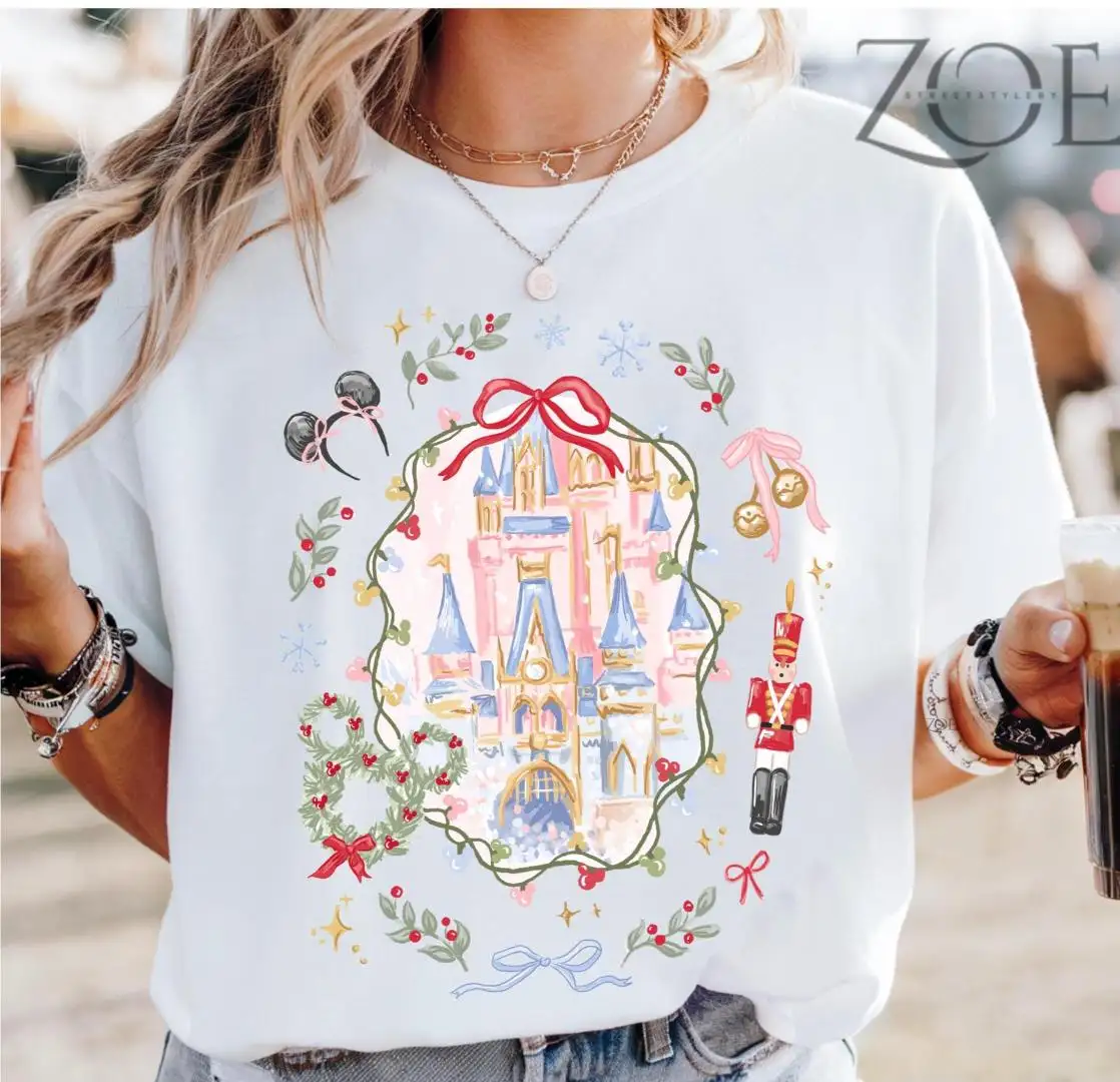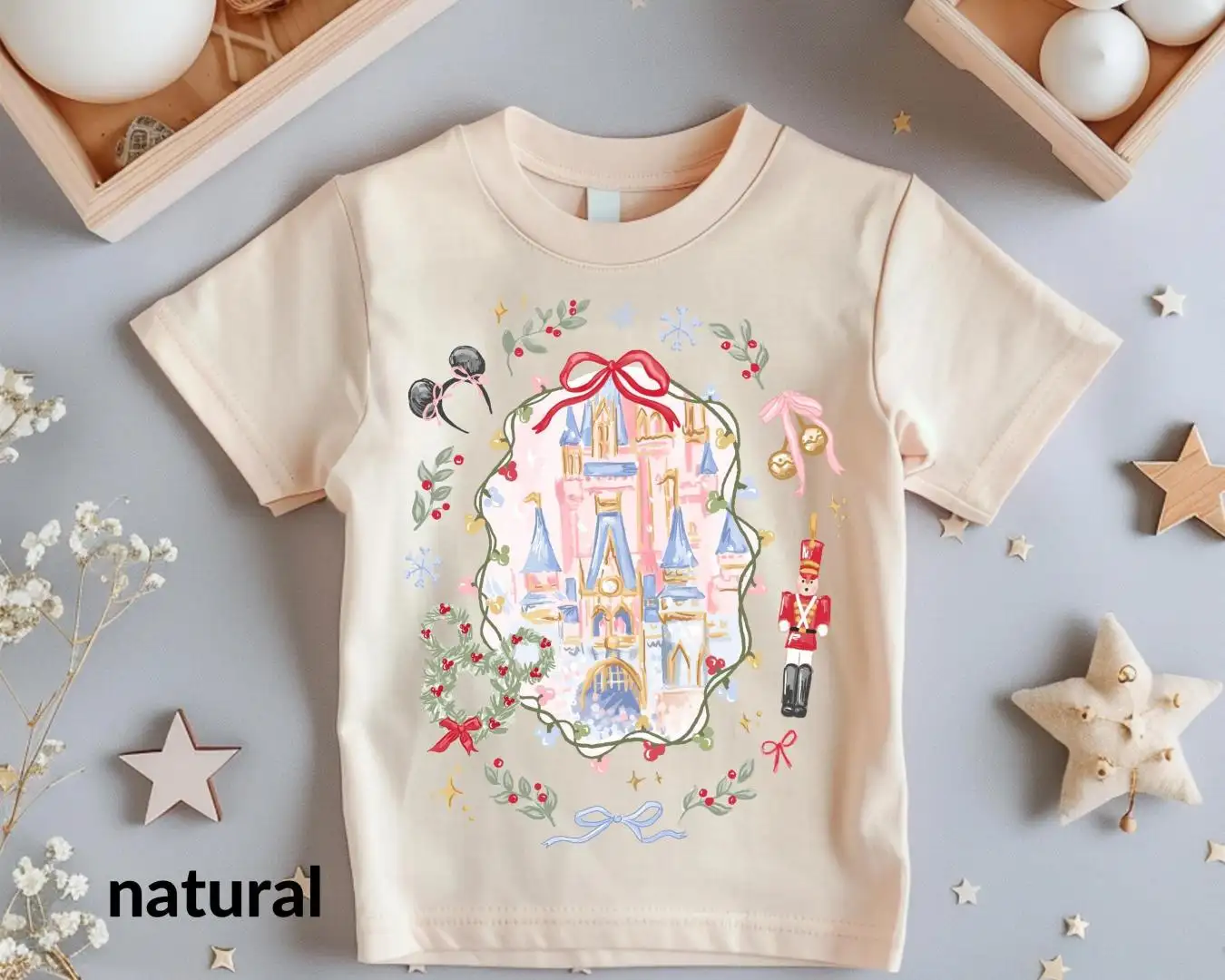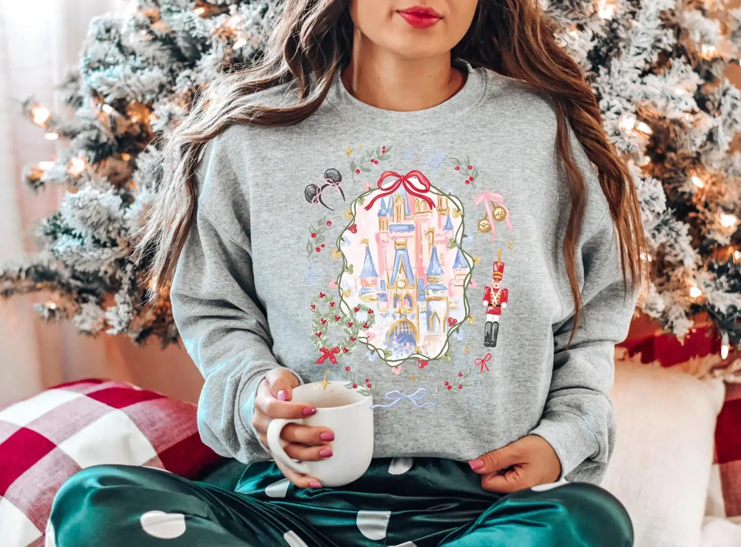 Disney Coquette Bow Christmas Sweatshirt , Disney Magic Castle Christmas Sweater, Mickey xmas Shirt, Disney Trip Shirt Nutcracker