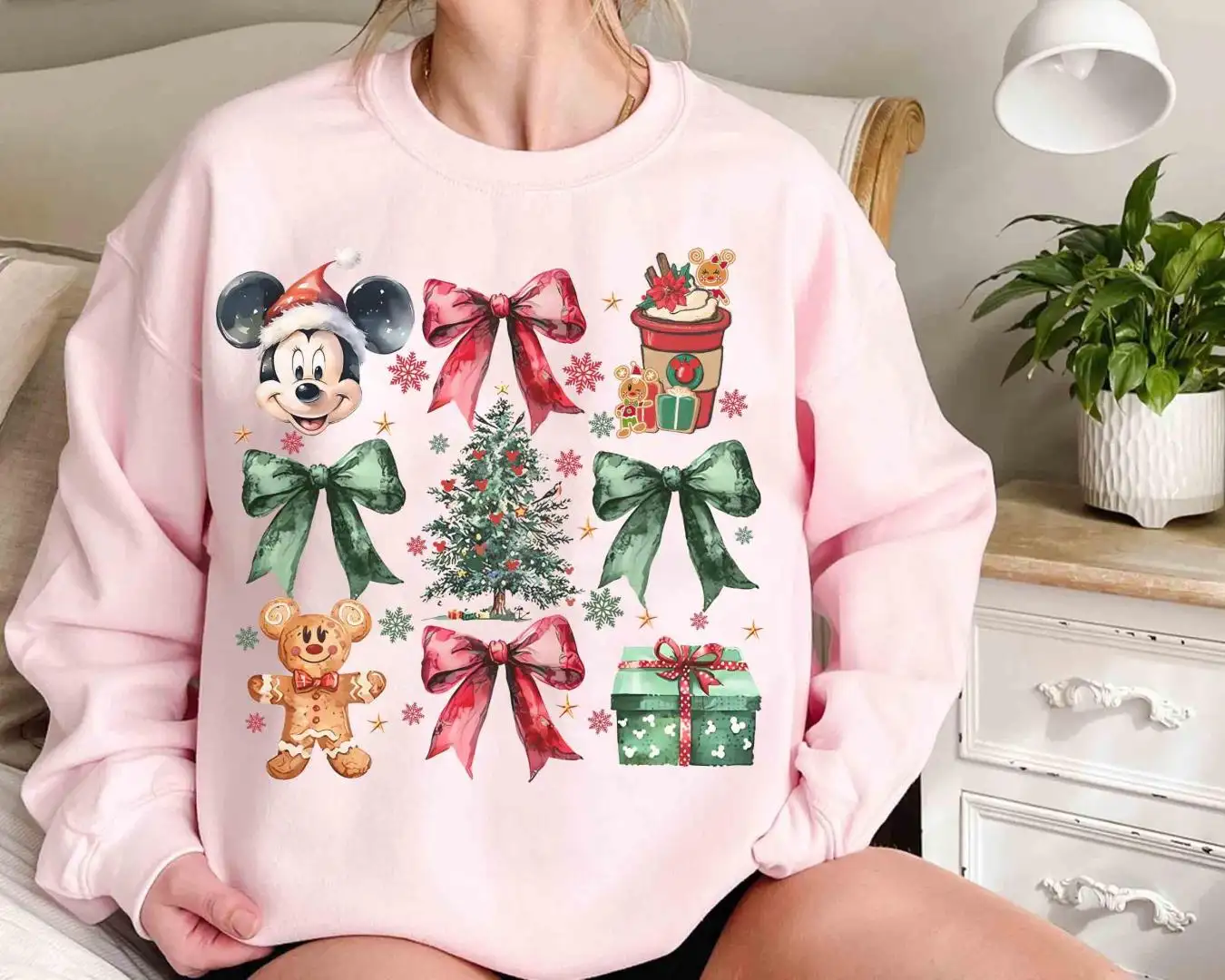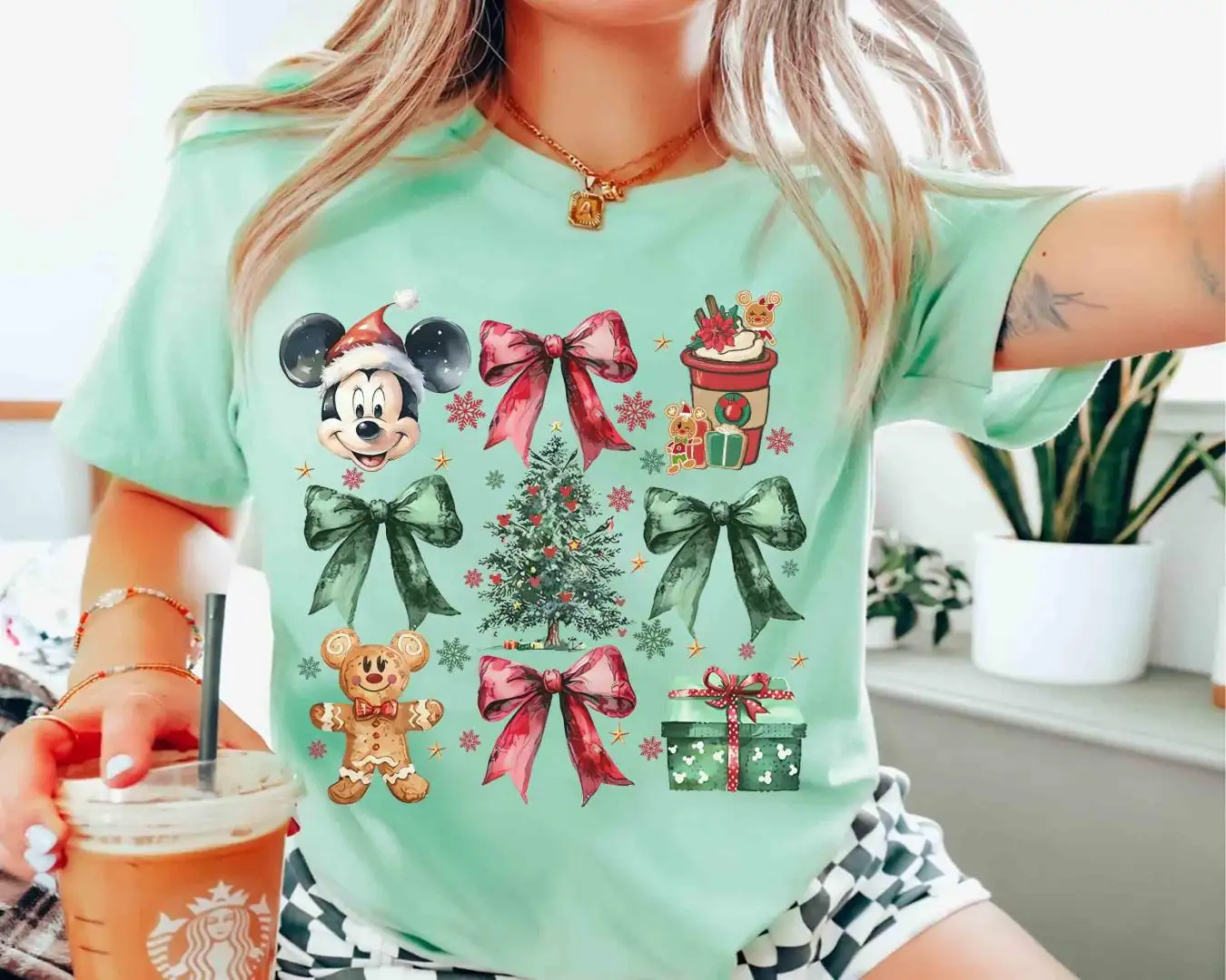 Disney Coquette Bows Gingerbread Christmas Tree Shirt, Mickey's Very Merry Xmas Party 2025 Tee, Disneyland Family Holiday Christmas Shirt