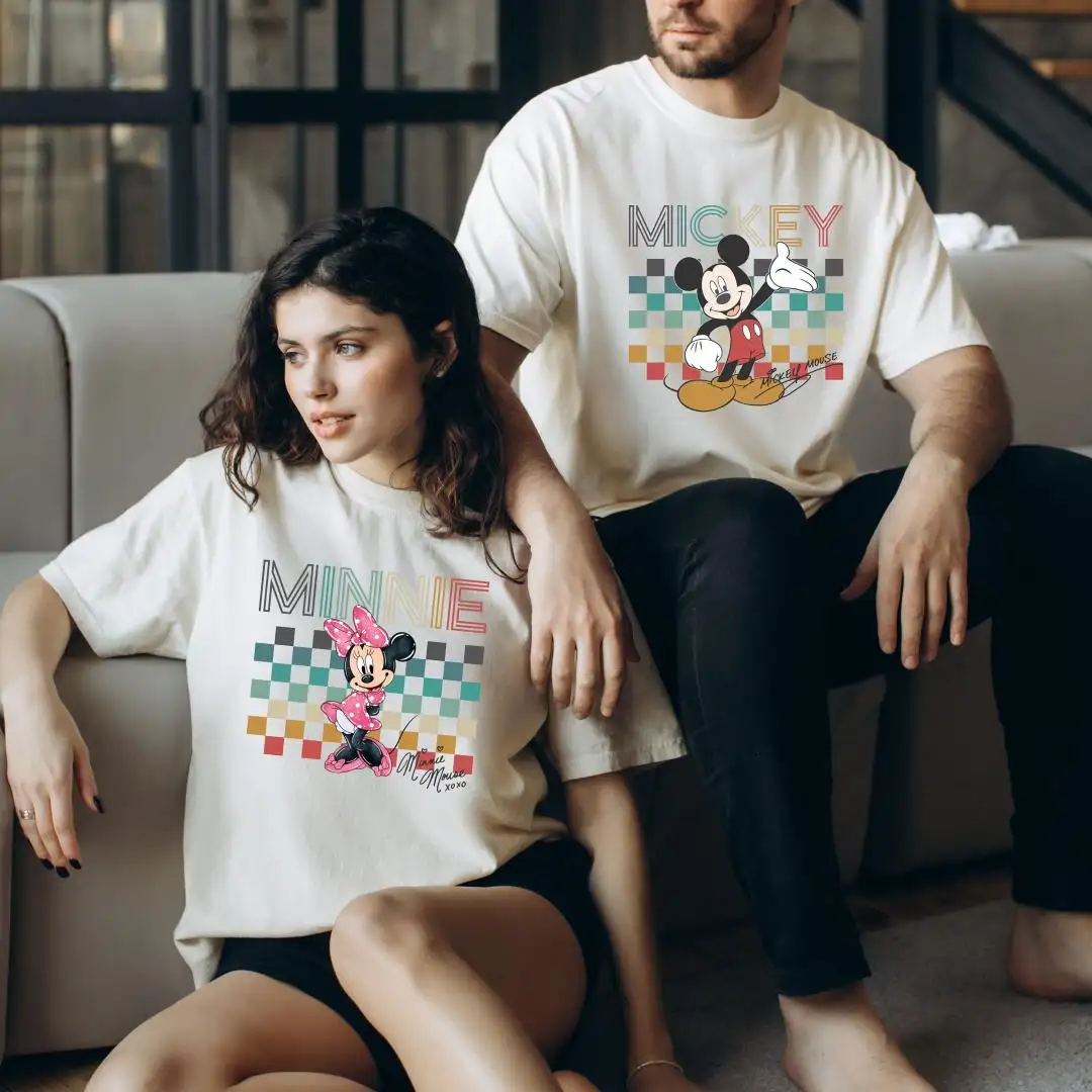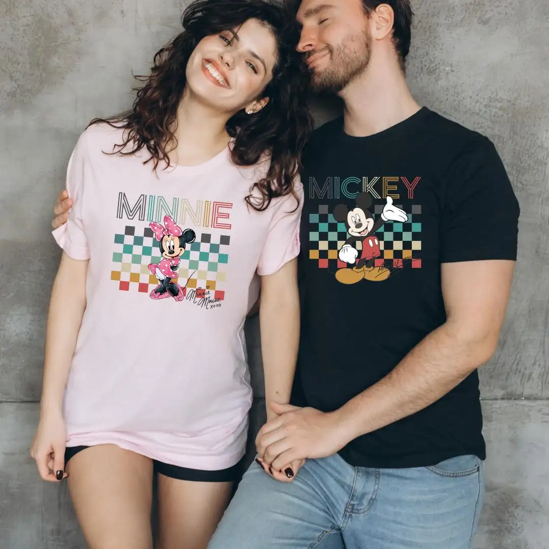 Disney Couple Shirt Watercolor Checkered Mickey Minnie