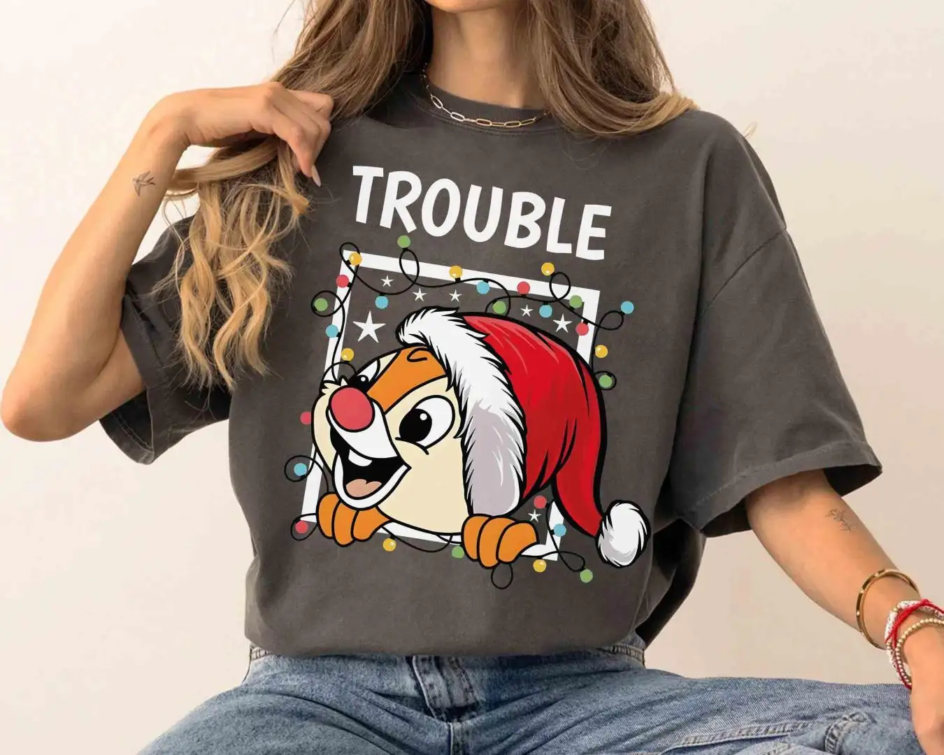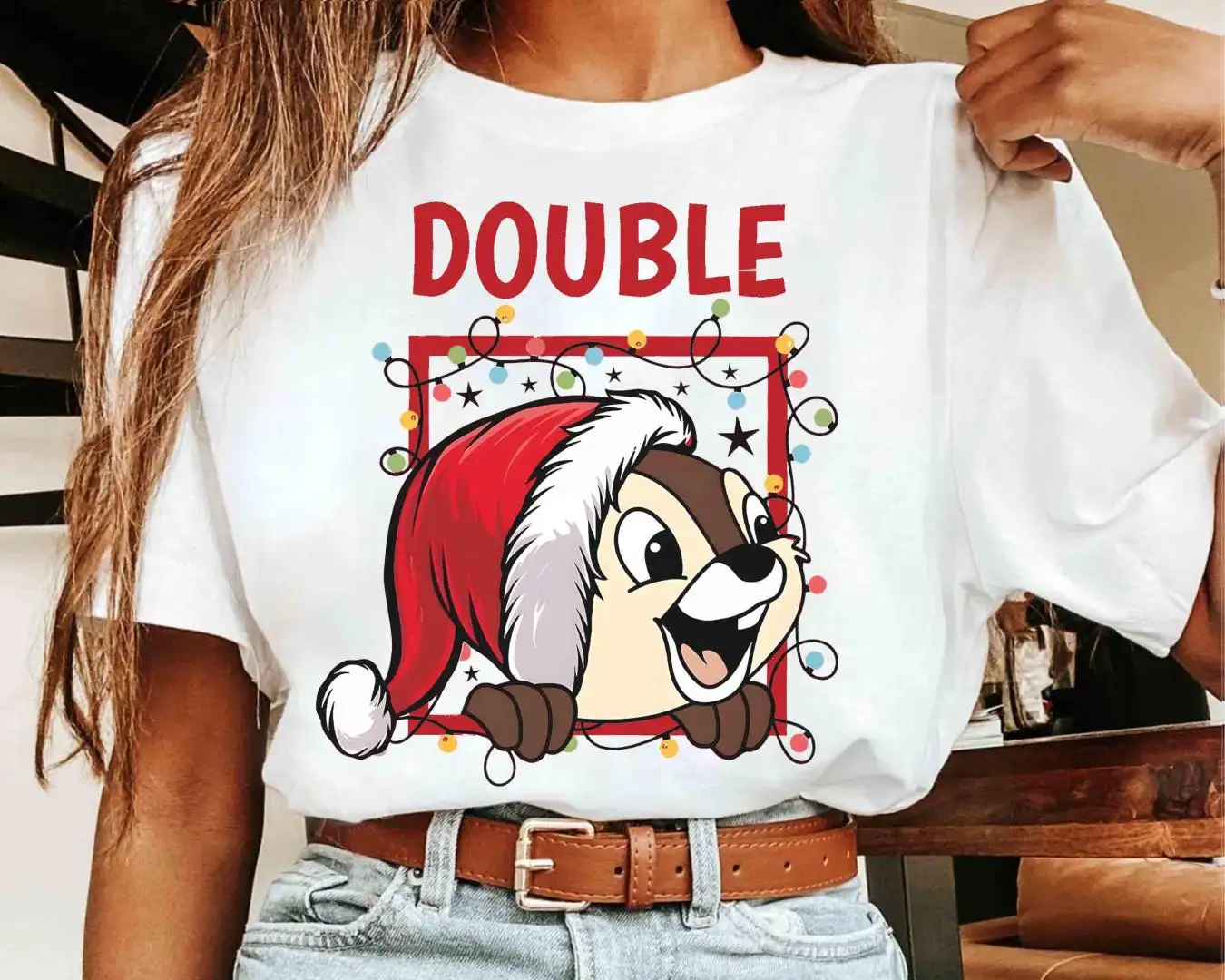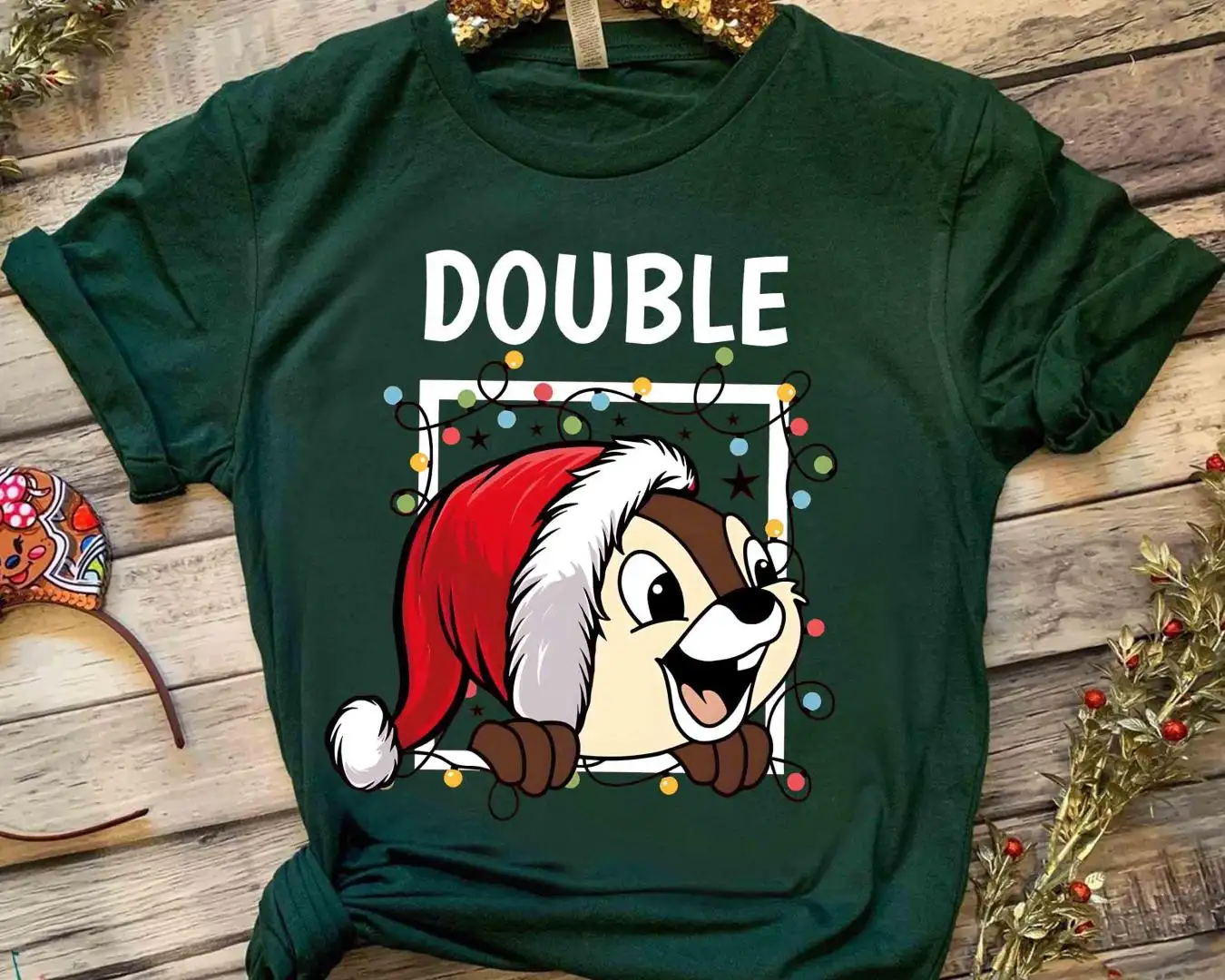 Disney Couples Chip n Dale Double Trouble Christmas Light T-Shirt, Disneyland Vacation Holiday Gift, Mickey Very Merry Xmas Party Sweatshirt