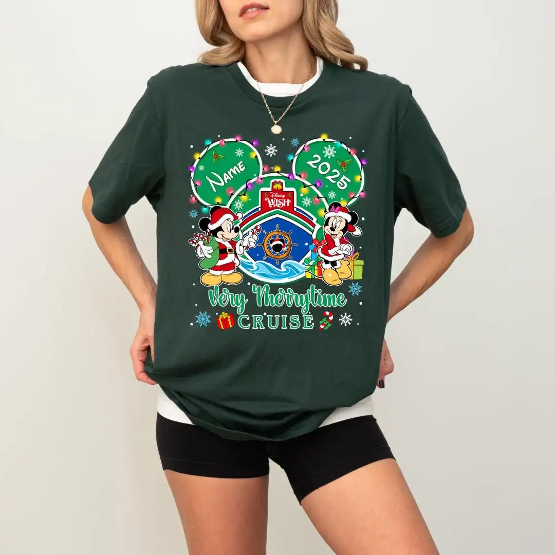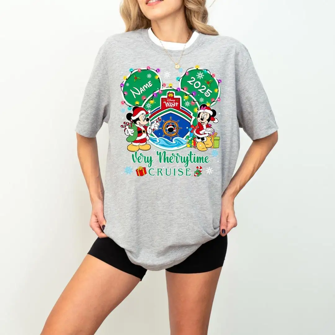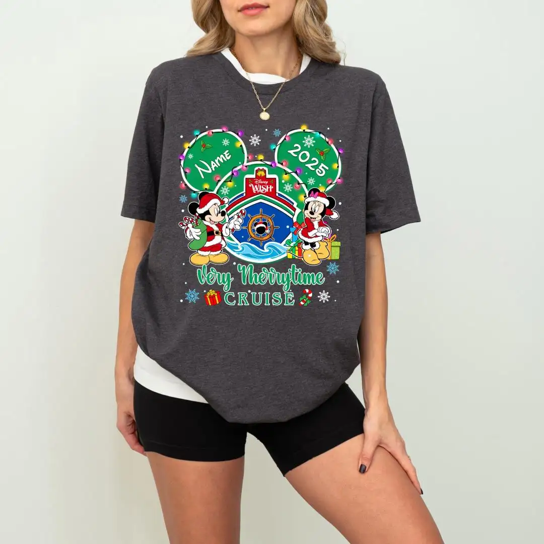 Disney Cruise Xmas Tee, Family Christmas Cruise Shirt, Custom Mickey Minnie Very Merry Time Christmas Shirt, Disney Wish Cruise Line Tee