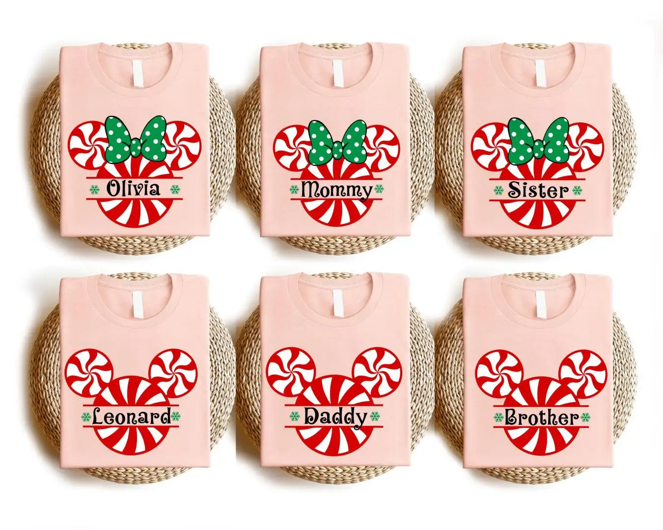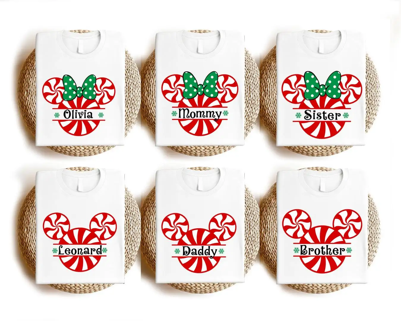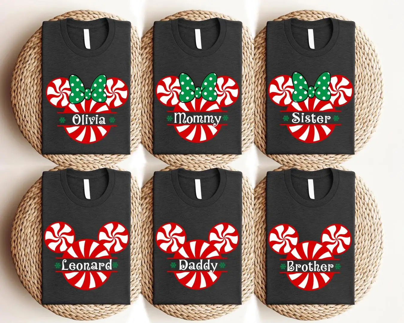 Disney Family Christmas Shirt, Disneyland Holiday Gift, Custom Family Xmas Tees, Candy Cane 2025 Xmas Sweater, Mickey Minnie Xmas T-shirt