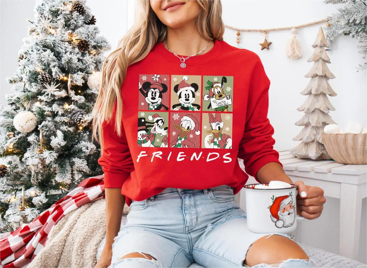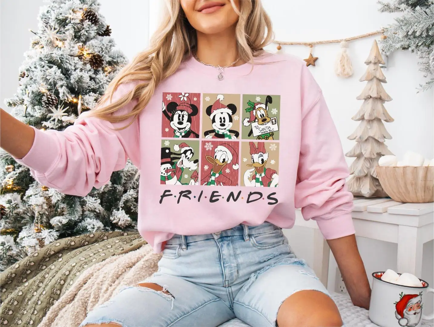 Disney Friends Christmas Shirt, Vintage Disney Merry Christmas Family Sweater, Retro Mickey and Friends Christmas Sweatshirt