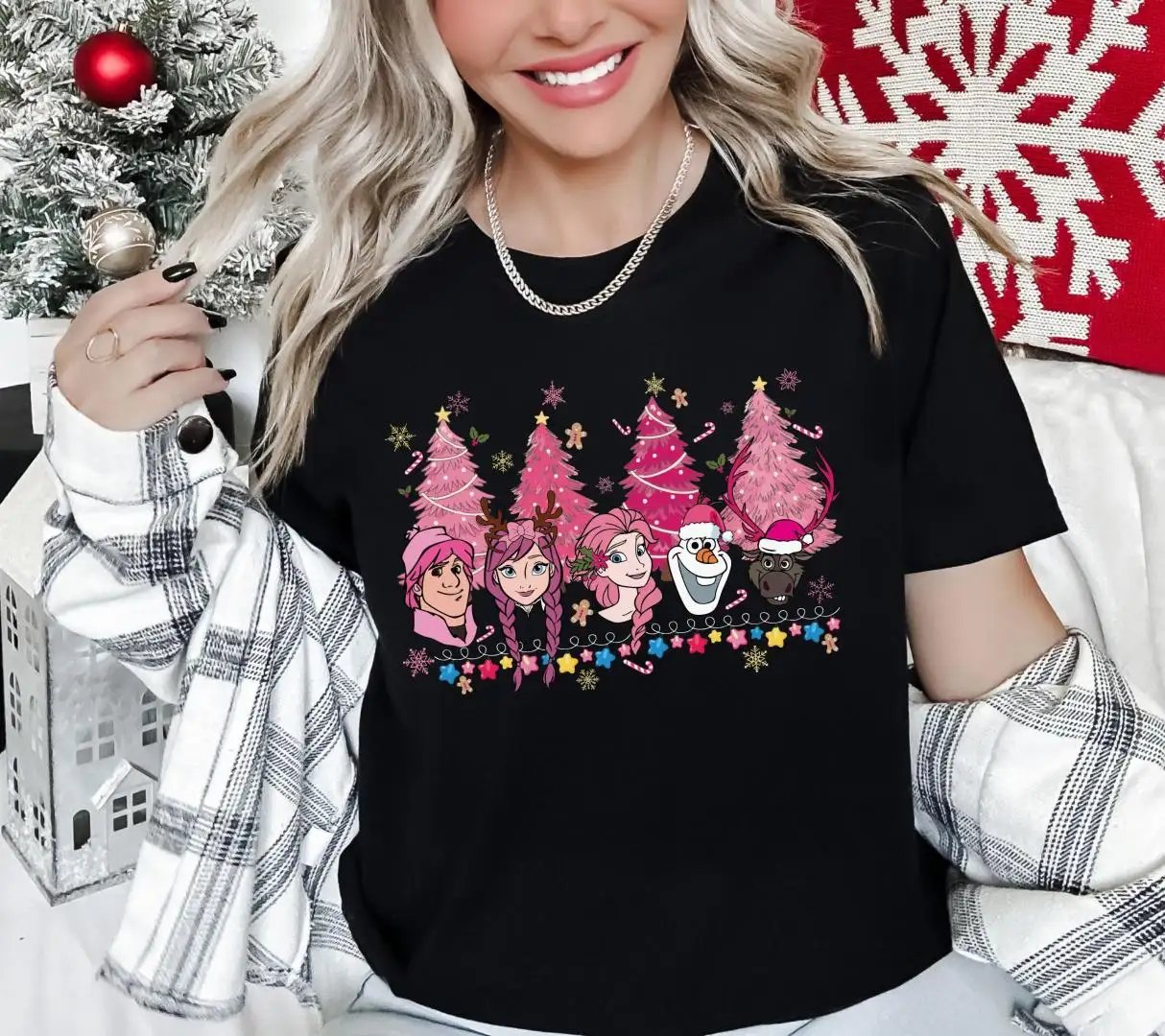 Disney Frozen Pink Christmas Sweatshirt, Princess Elsa & Anna Xmas Shirt, Olaf and Kristoff Xmas Sweater, Disney Girls Christmas Trip Tee