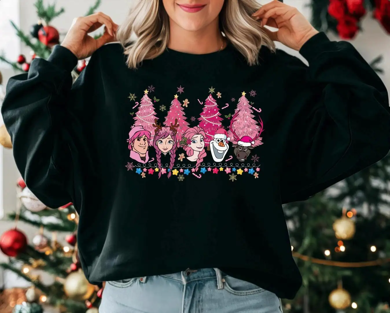 Review Disney Frozen Pink Christmas Sweatshirt, Princess Elsa & Anna Xmas Shirt, Olaf and Kristoff Xmas Sweater, Disney Girls Christmas Trip Tee
