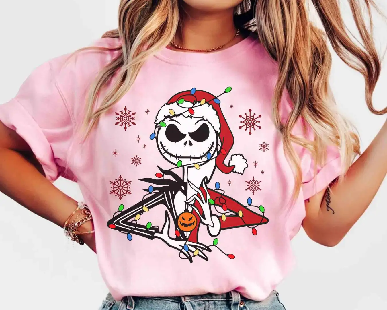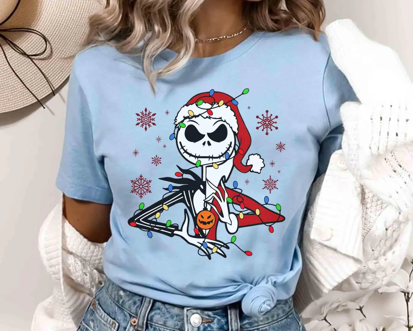 Disney Jack Skellington Santa Claus Christmas Light T-shirt, Mickey's Very Merry Party 2025 Gift, Nightmare Before Christmas Shirt