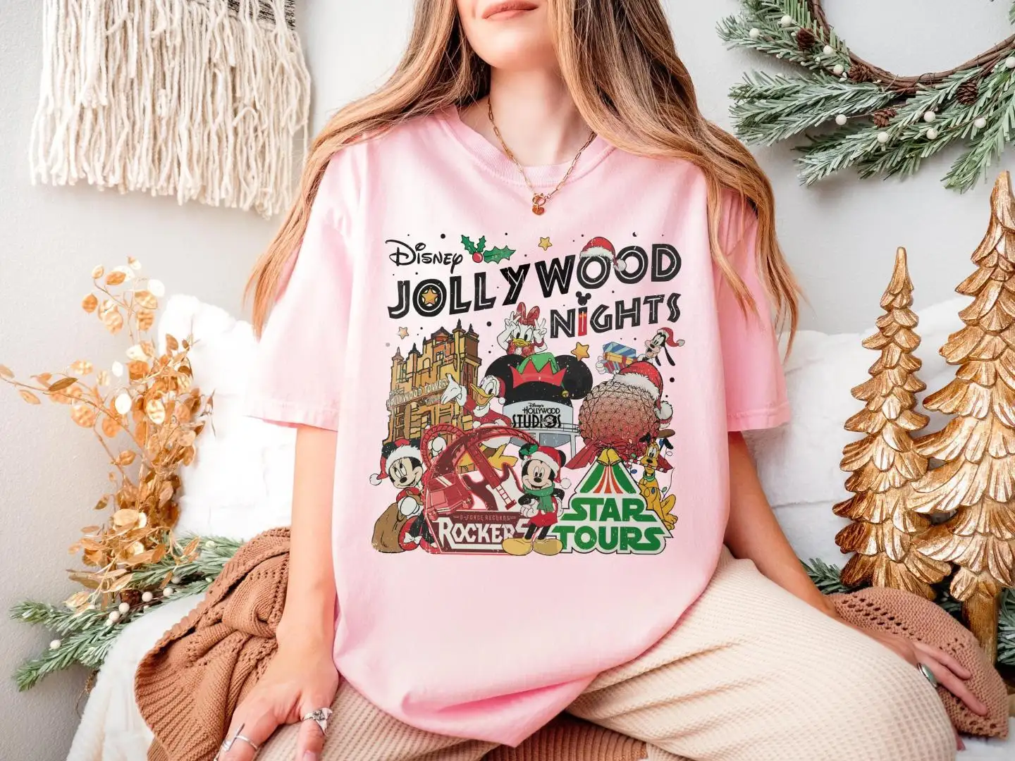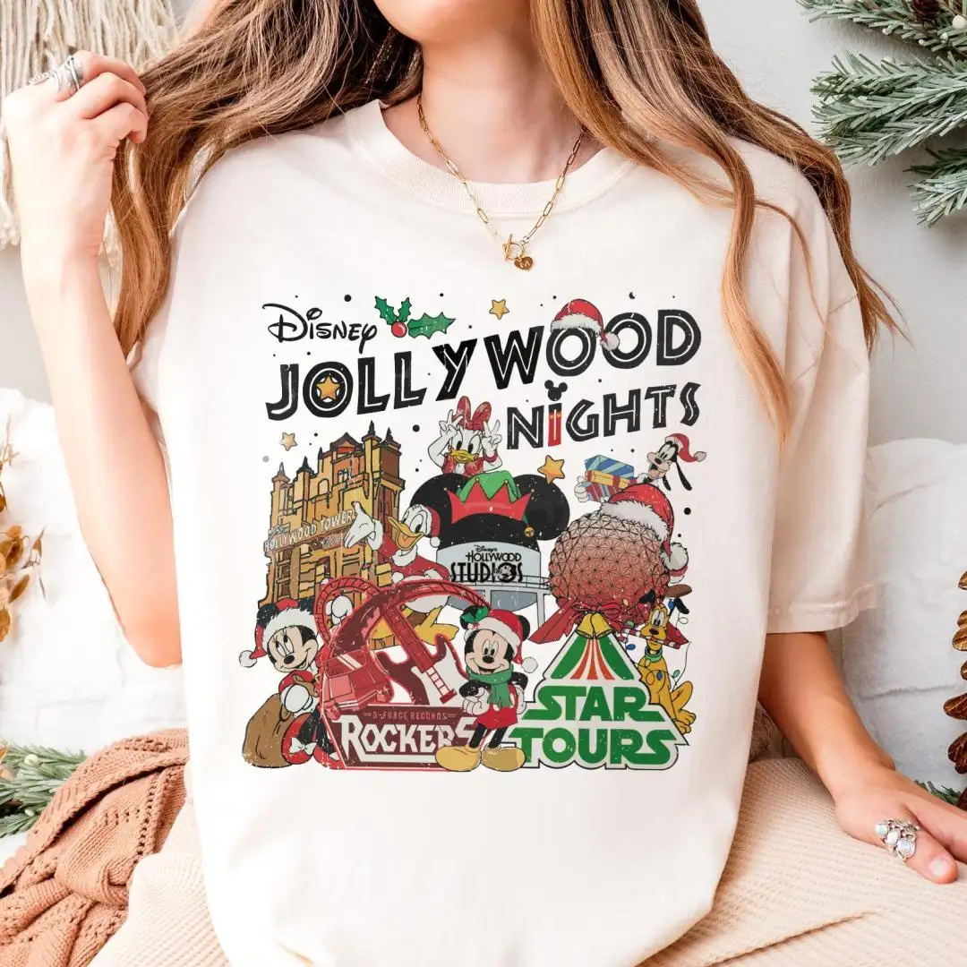 Disney Jollywood Nights 2025 Shirt, Hollywood Studios Xmas Tee, Mickey & Friends Christmas Studios Trip, Disneyworld Family Holiday Hoodie
