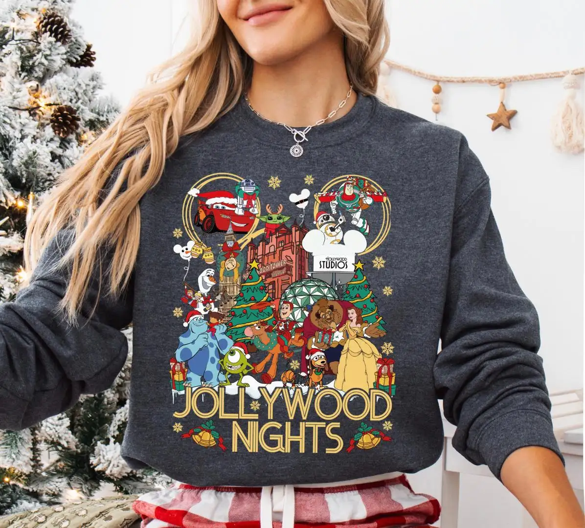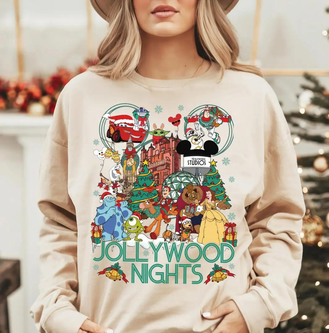 Review Disney Jollywood Nights Christmas Sweatshirt, Disney Holiday Tee, WDW Mickey Hollywood Studio Xmas Tee, Mickey's Very Merry Christmas Shirt