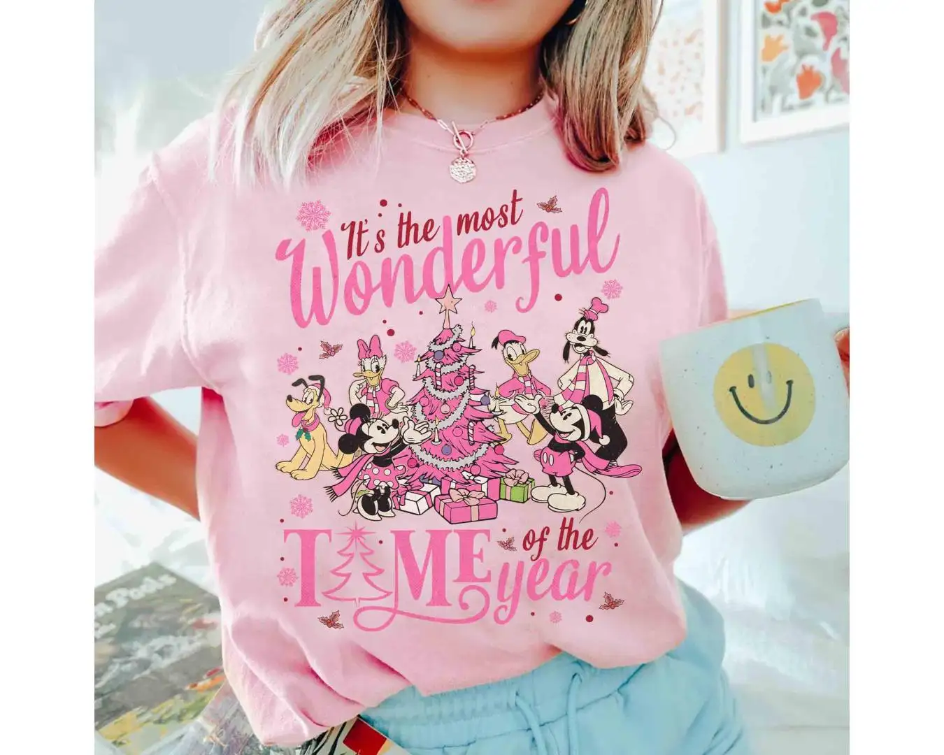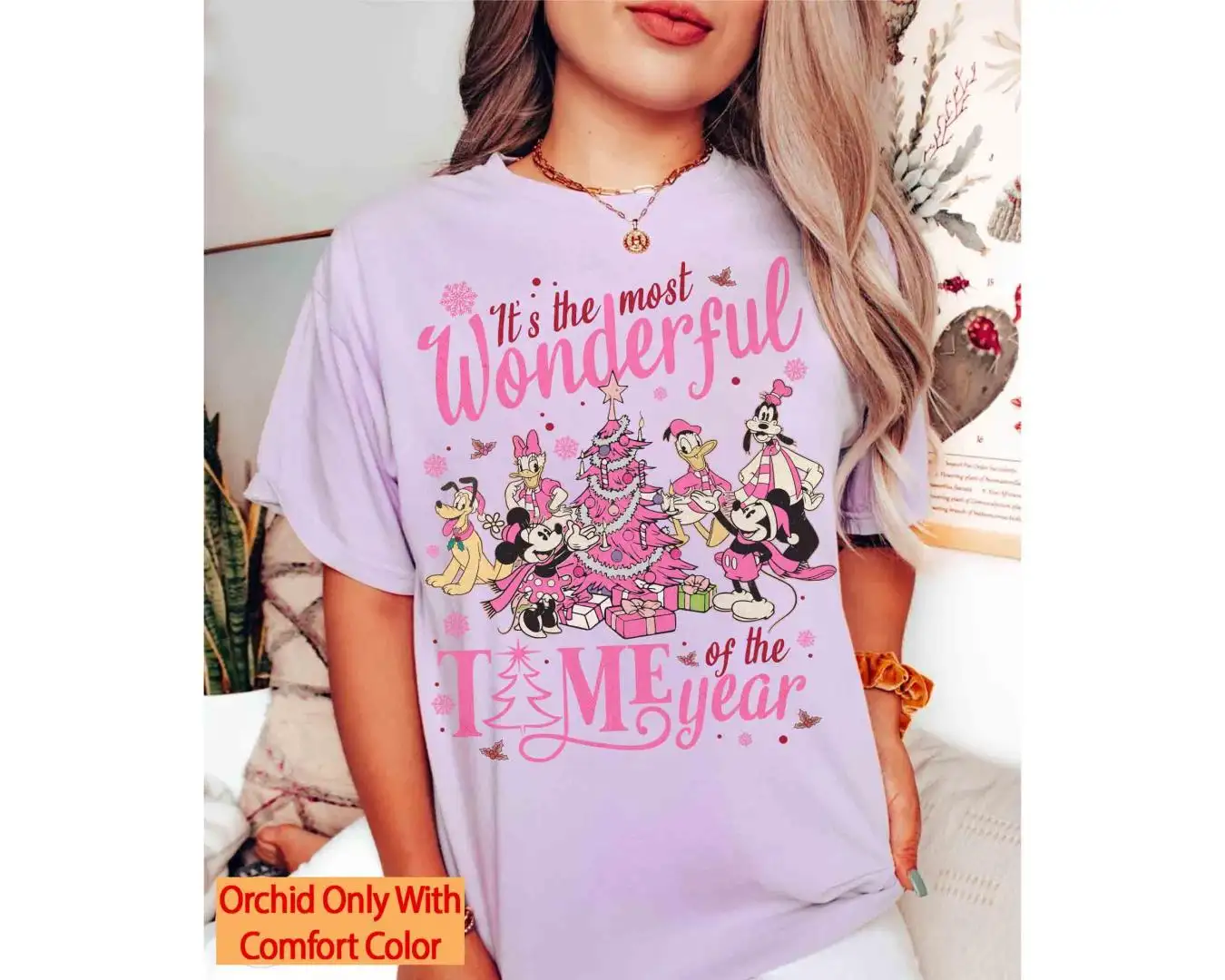 Disney Mickey And Friends Christmas Pink Sweatshirt, Most Wonderful Time Of the Year Xmas T-shirt, Mickey's Very Merry Christmas Party Gifts