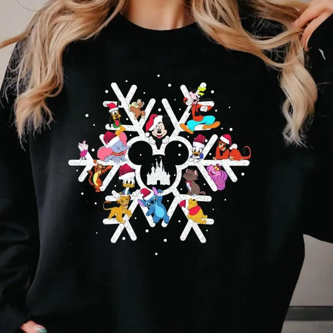 Disney Mickey & Friends Snowflake Christmas Shirt, Disney 2025 Christmas, Mickey's Very Merry Christmas Tee, Disneyland Xmas Trip Hoodie