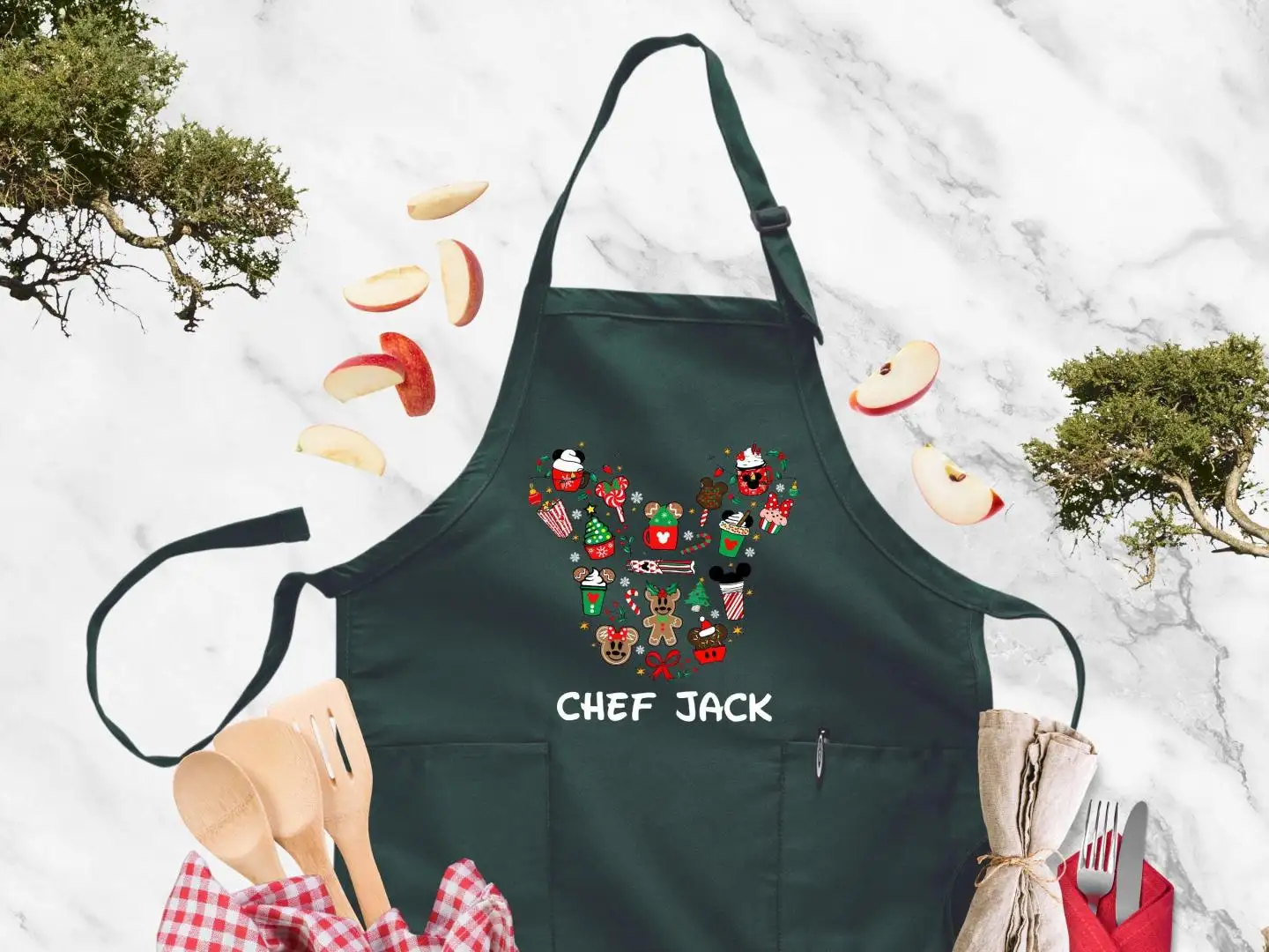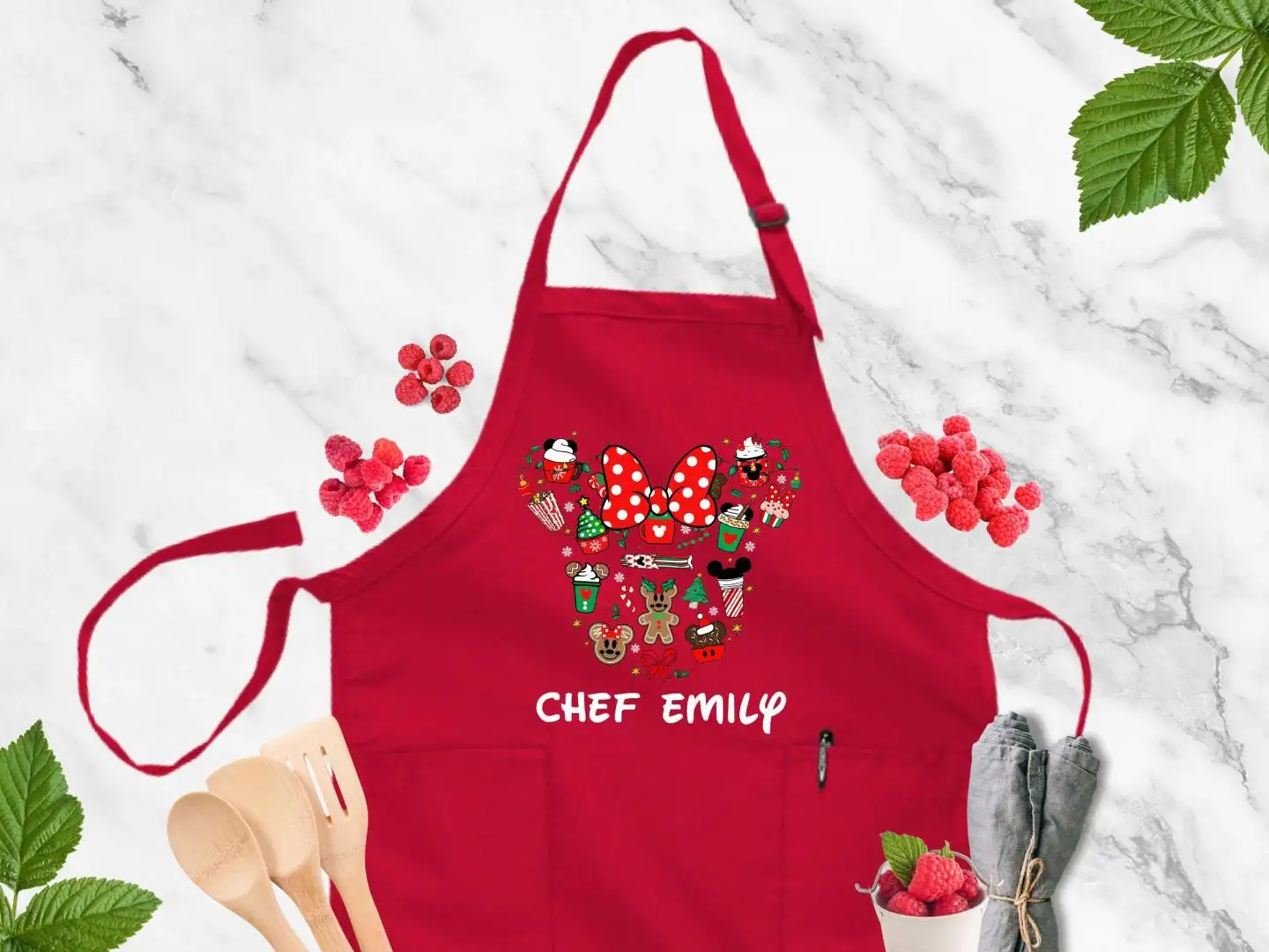 Disney Personalized Christmas Apron, Christmas Cookie Crew Apron, Christmas Gift For Chefs, Mickey and Minnie, Custom Name Christmas Apron
